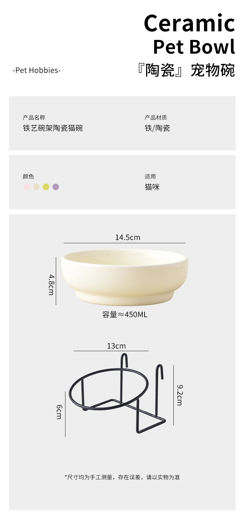 훌루 그릇 애완 동물 그릇 세라믹 그릇 후크 철 프레임 고양이 강아지 그릇 개 그릇 음식 그릇 밥 그릇 밥 그릇
