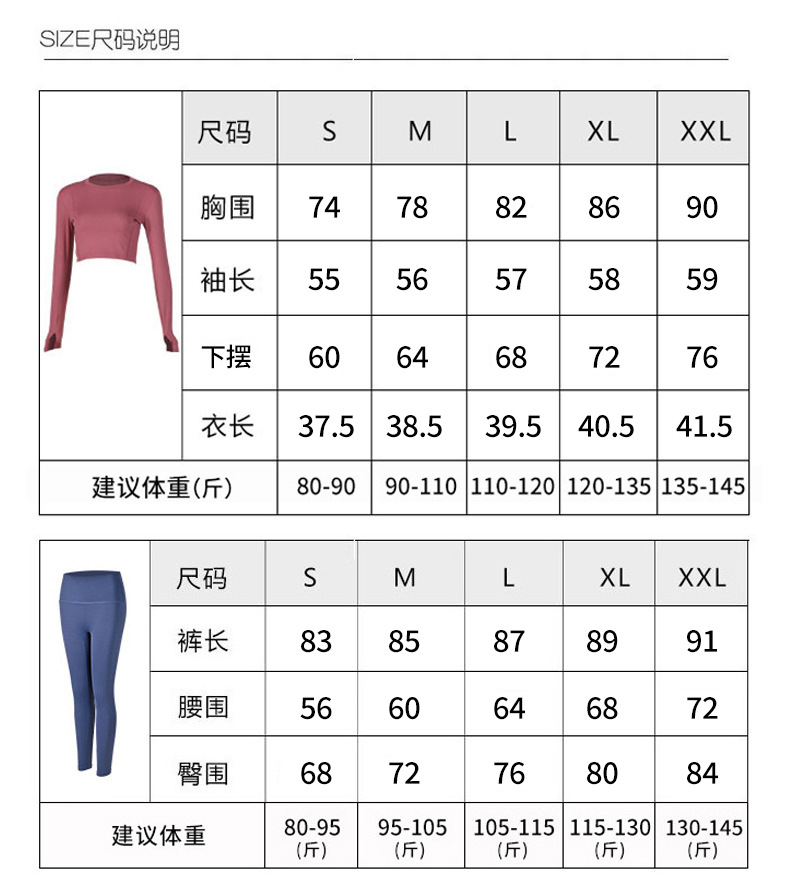 MT20瑜伽长裤  尺码表