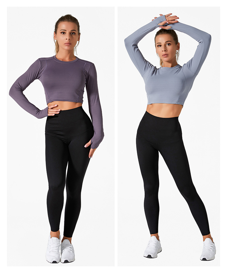 노딘 봄 여름 바디 요가 의류 여성 긴팔 속건성 러닝 탑과 바지 피트니스 스포츠 요가 의류 세트스토어 가기