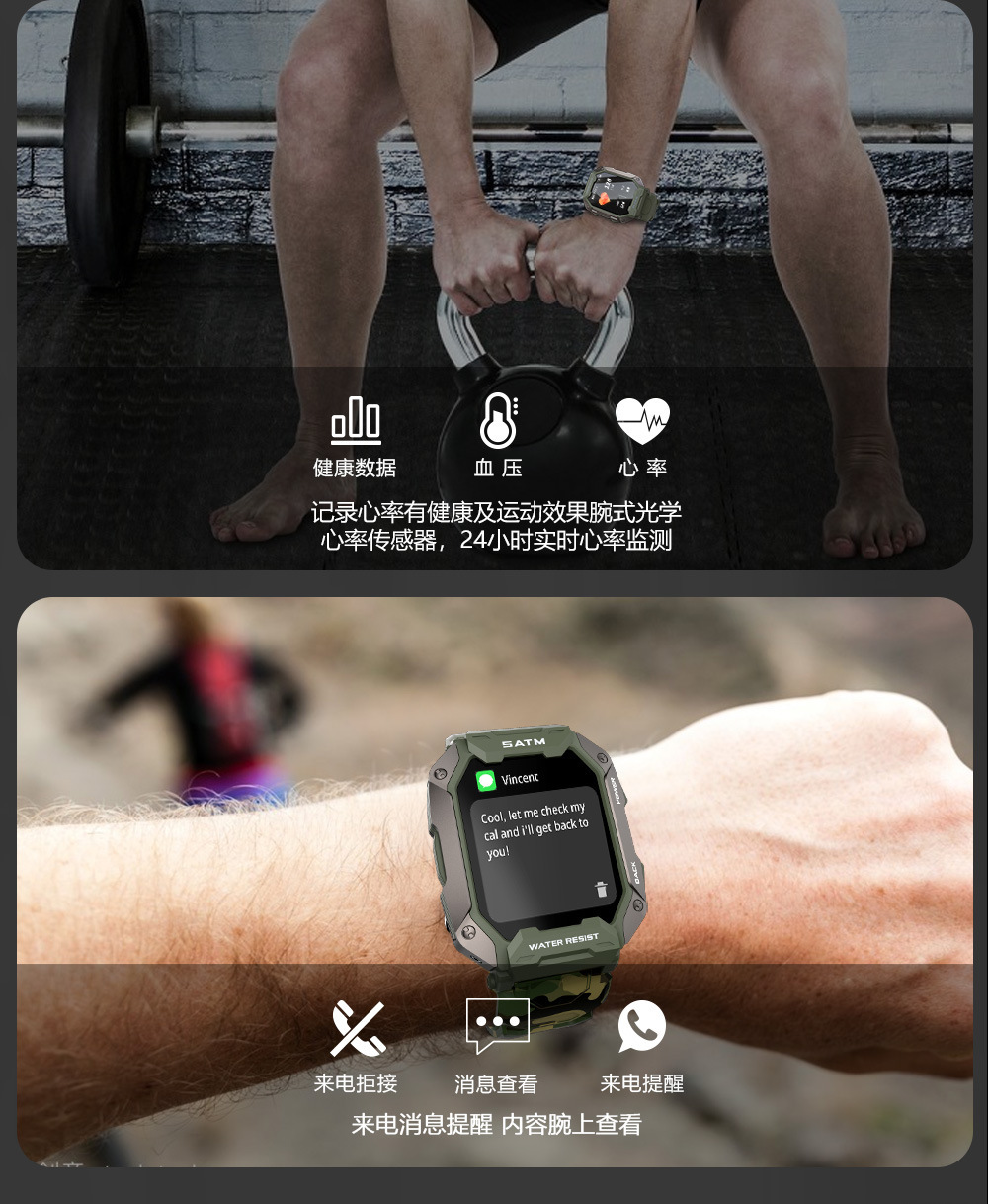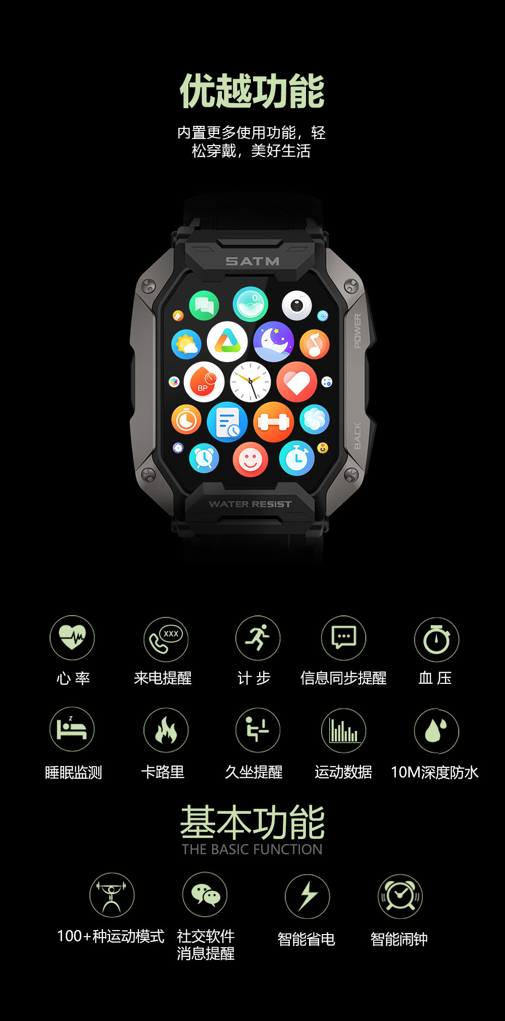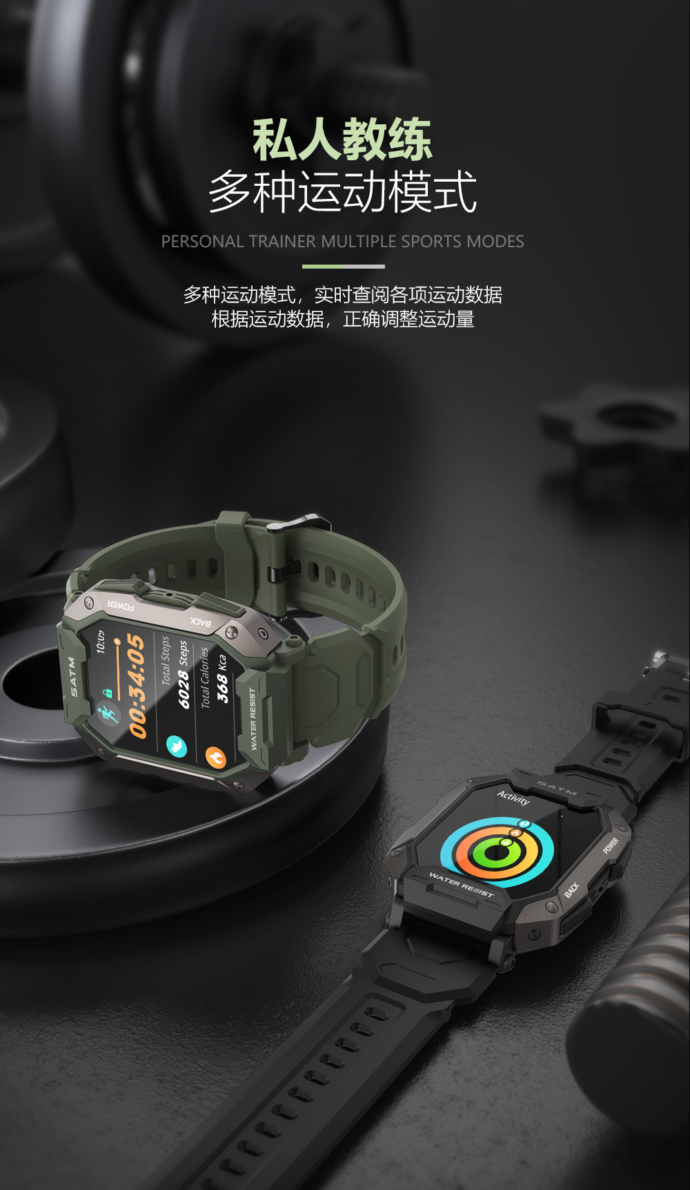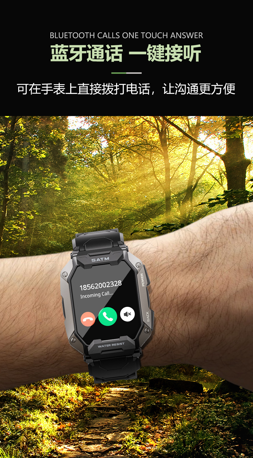 새로운 C20PLUS 블루투스 전화 야외 스마트 시계 멀티 스포츠 모드 단계 계산 심박수 혈액 산소 스마트 손