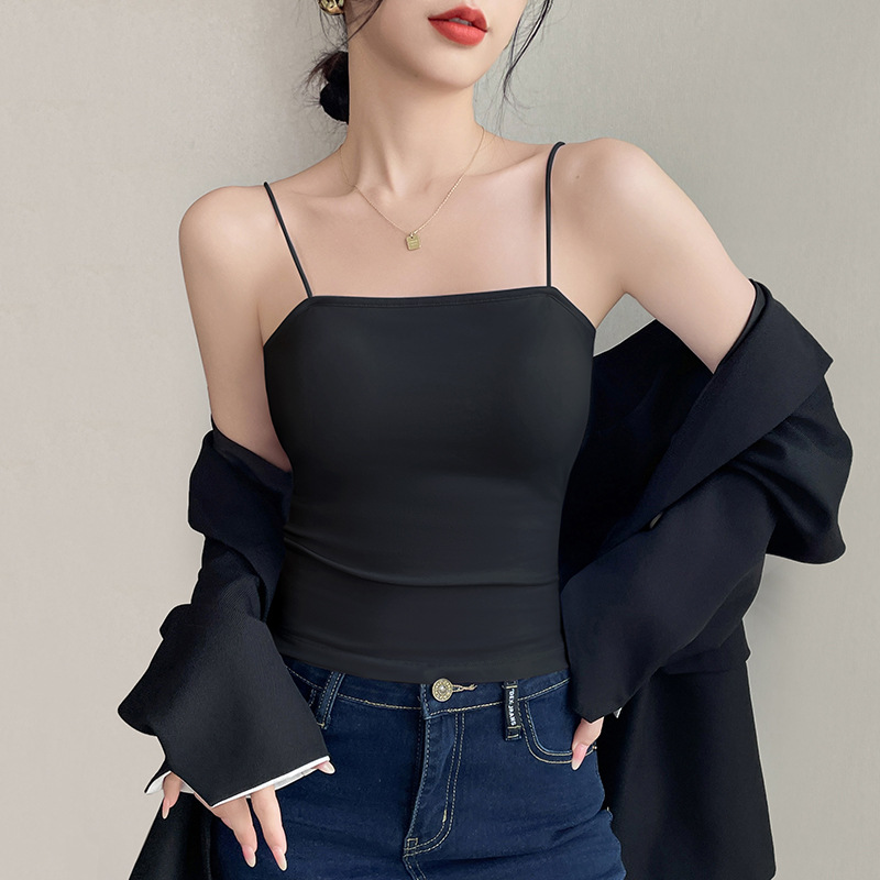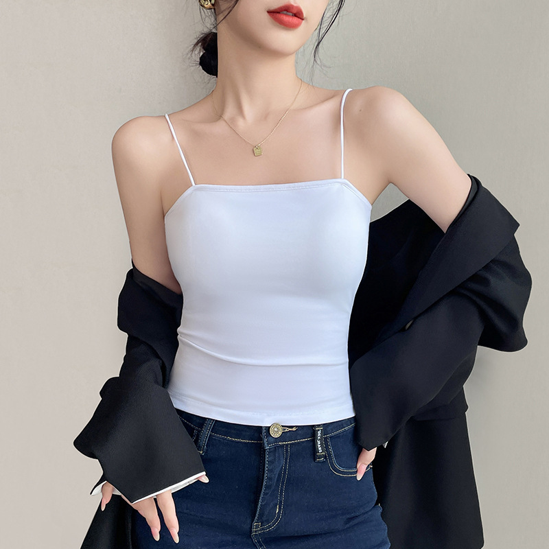 순수 면화 가슴 패드 슬링 봄과 여름 내복 민소매 탑 슬림핏 섹시한 아우터웨어 여성베이스 조끼