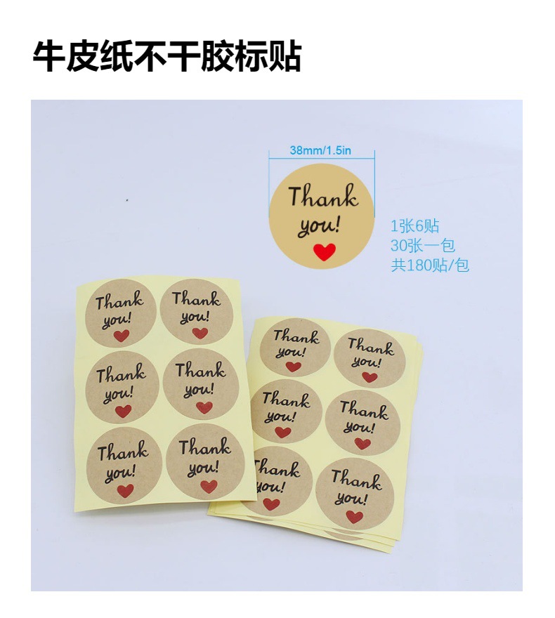 감사합니다 작은 일괄 감사 카드 라운드 크래프트 종이 스티커 영어 간단한 추수 감사절 포장 스티커스토어 가기
