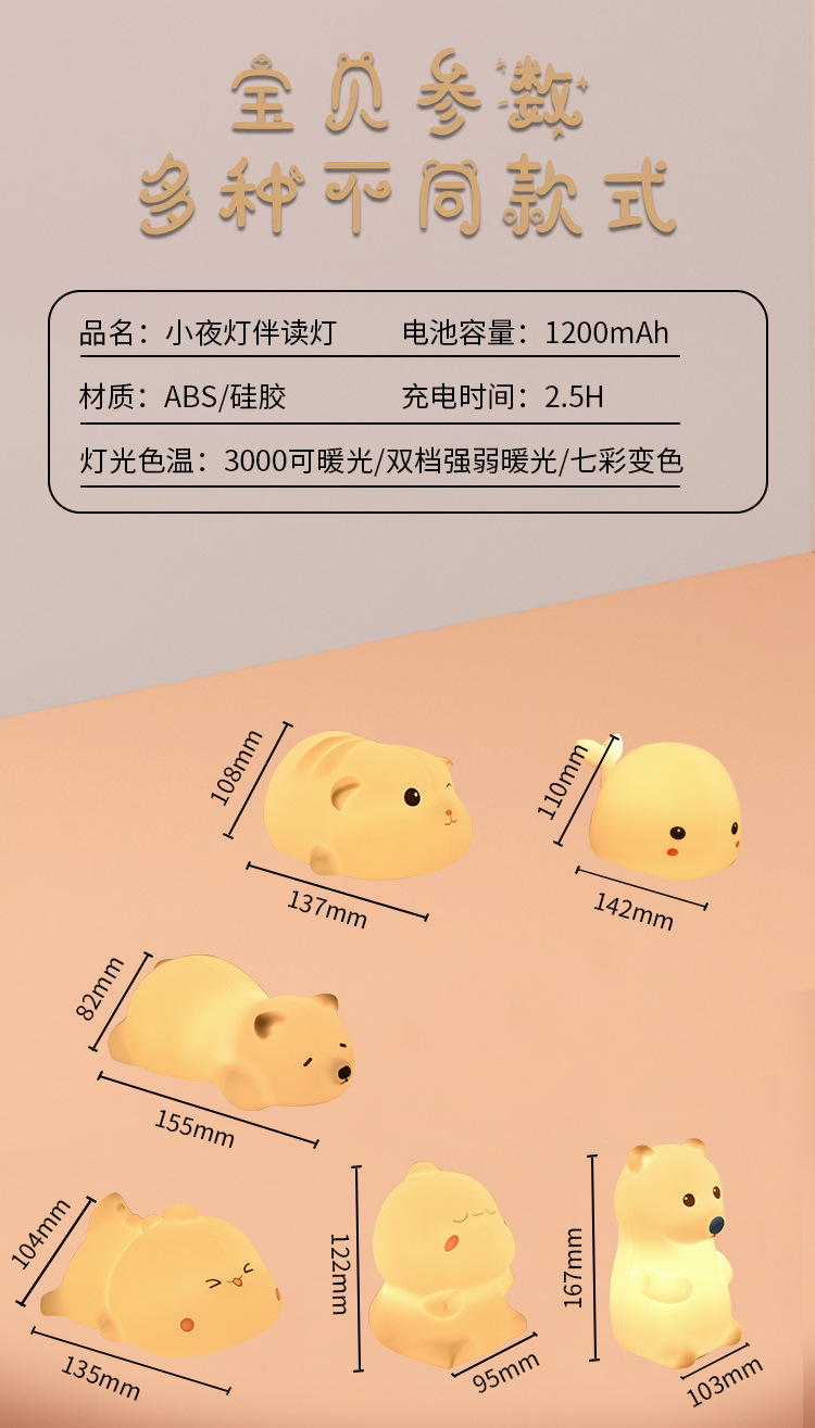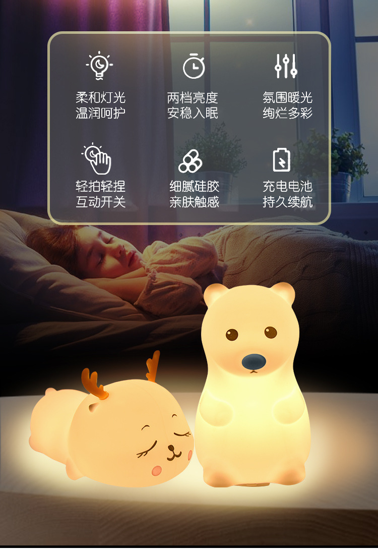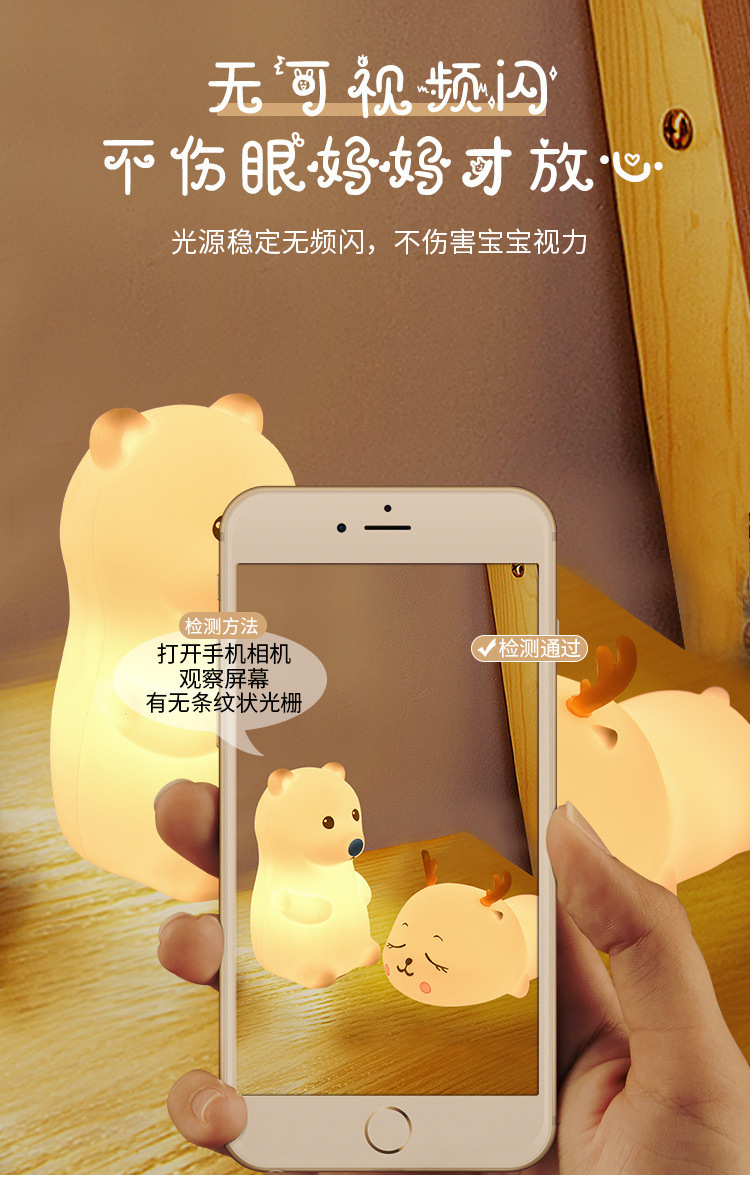 실리콘 팻 라이트 나이트 라이트 분위기 귀여운 사슴 침실 침대 옆 수면 아기 소녀 생일 선물 먹이