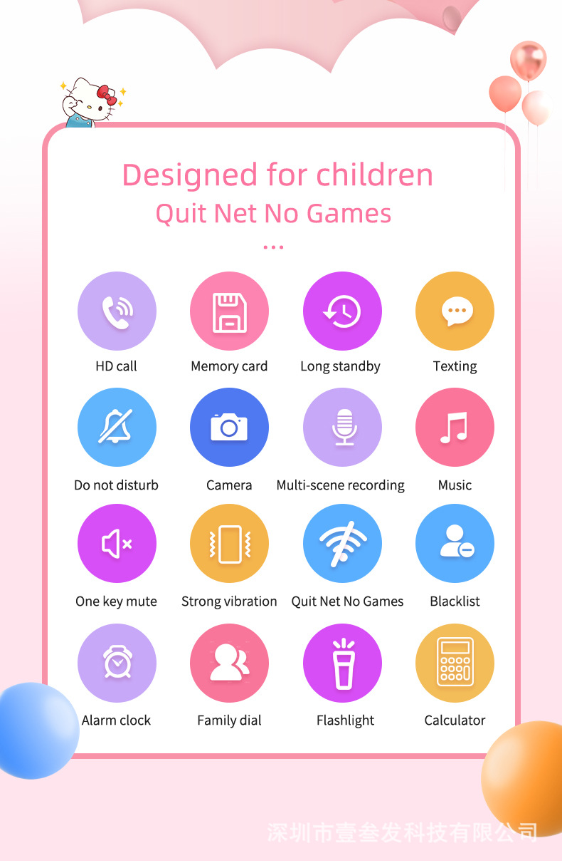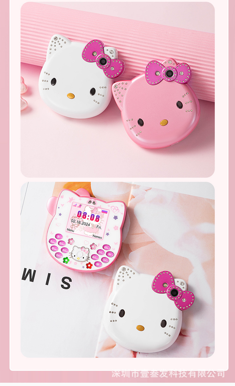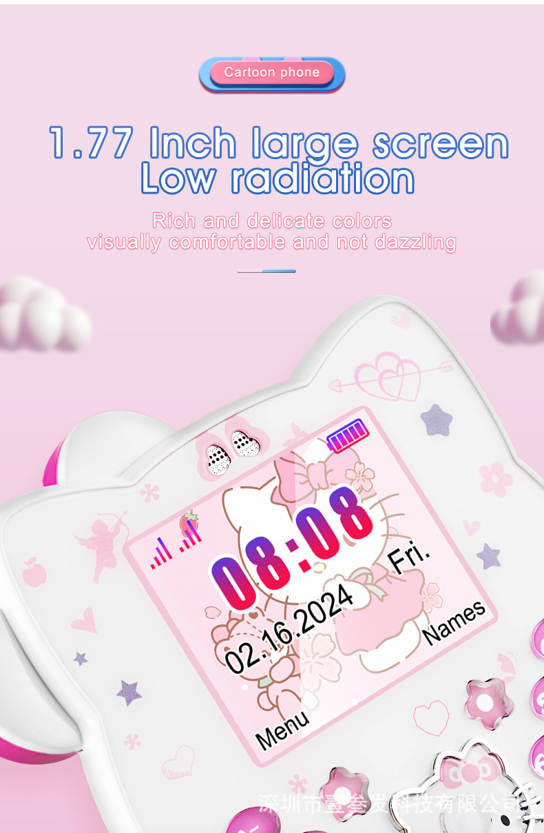 i168 미니 버튼형 스마트폰 신형 미니 헬로키티 휴대폰 해외 직구 인기 만화 귀여운 디자인