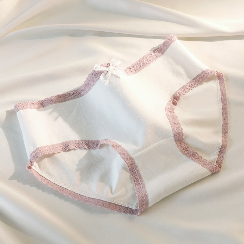 소녀의 면화 속옷 여성 코튼 크로 치 학생의 프랑스 사랑 복숭아 꽃 흰색 중간 허리 삼각형 반바지