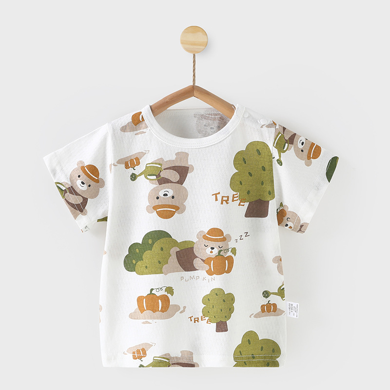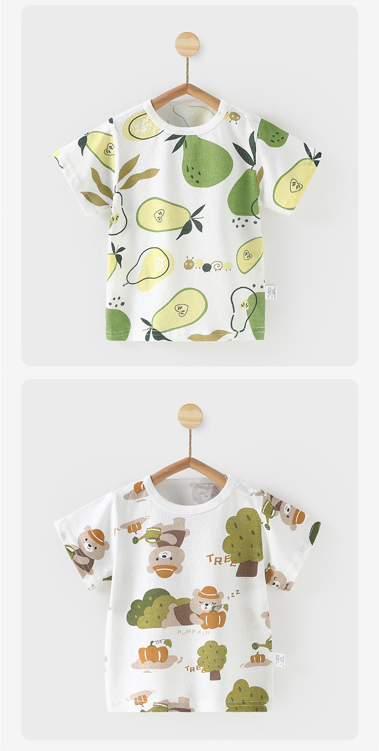 아기의 얇은 반소매 티셔츠 아기 톱 0-4 세 어린이 여름 원피스 남학생과 여아 반소매 기초 셔츠 트렌디스토어 가기