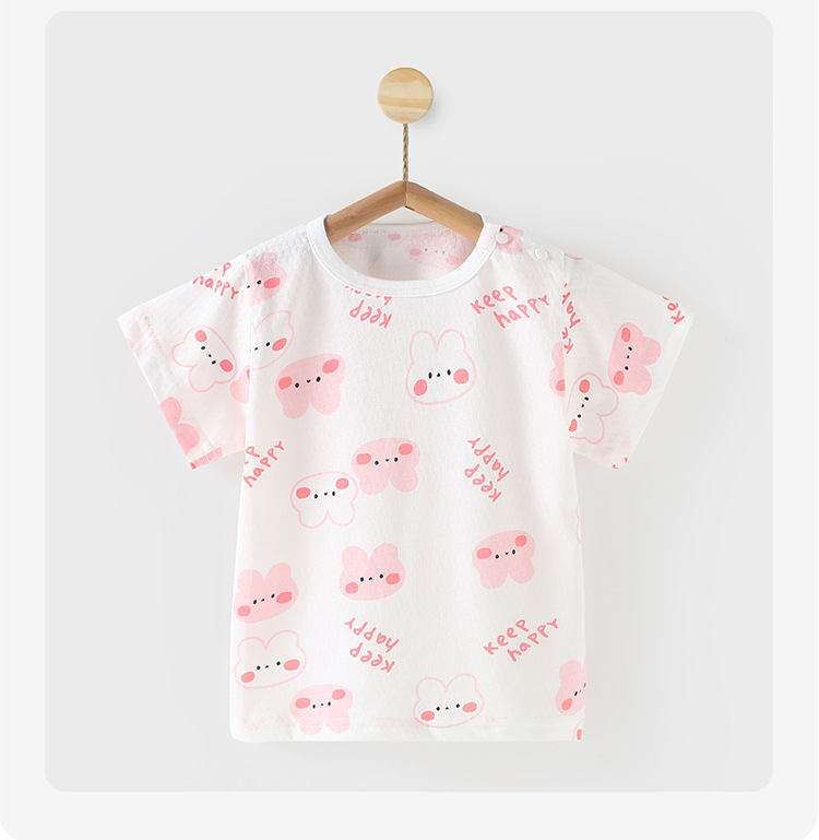 아기의 얇은 반소매 티셔츠 아기 톱 0-4 세 어린이 여름 원피스 남학생과 여아 반소매 기초 셔츠 트렌디