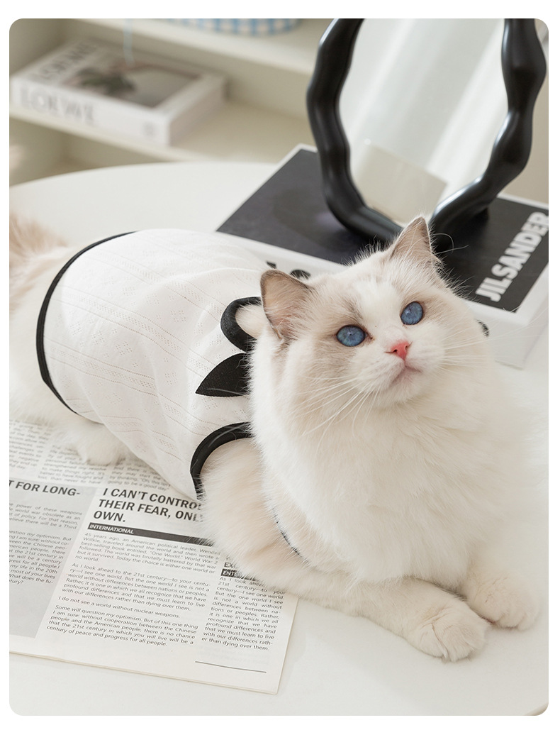봄과 여름 고양이 흑백 클래식 간단한 통기성 조끼 개 작고 중간 개 슬링 애완 동물 고양이 옷 테디스토어 가기