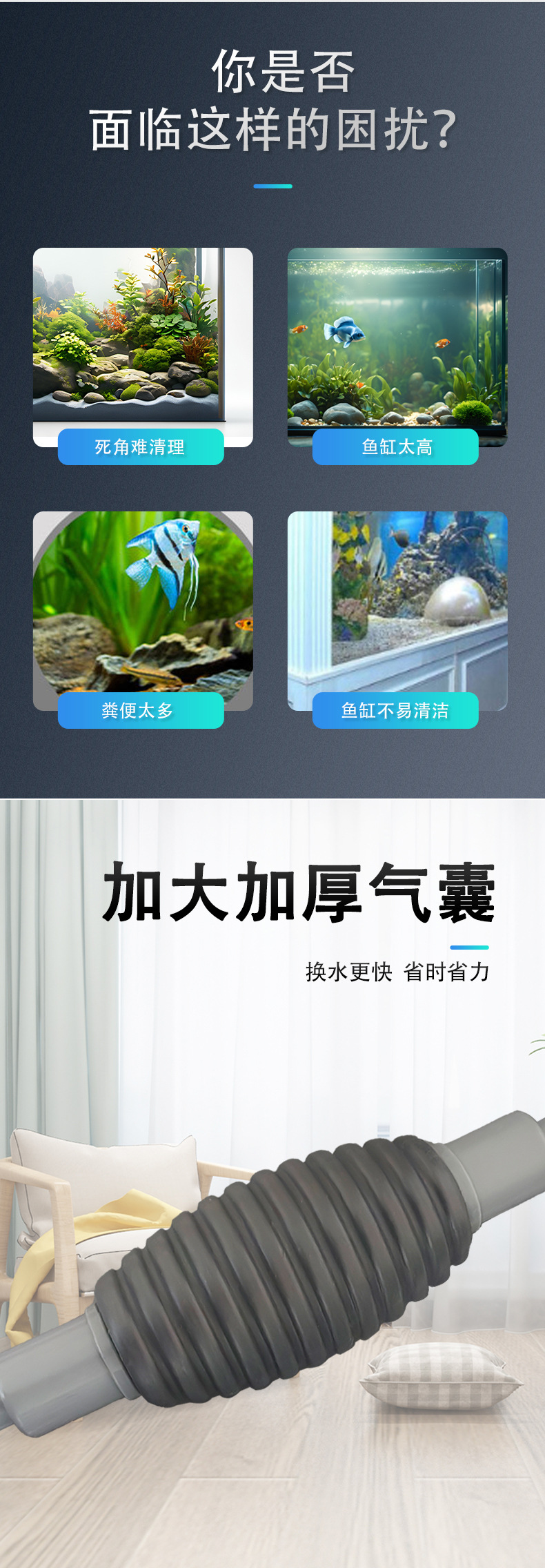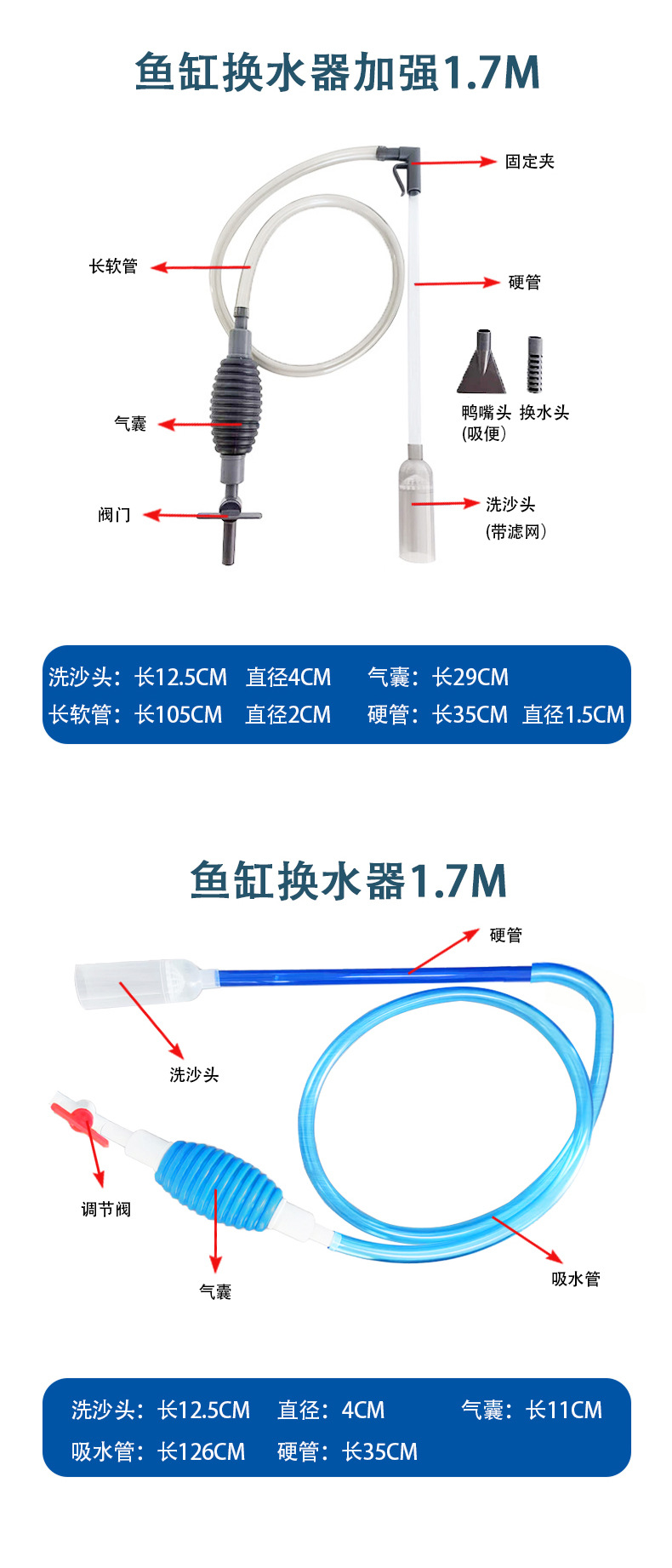 1.5米平口鱼缸换水器(蓝色)250套/箱;箱子尺寸85*53*53cm