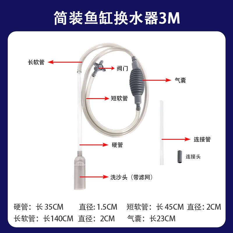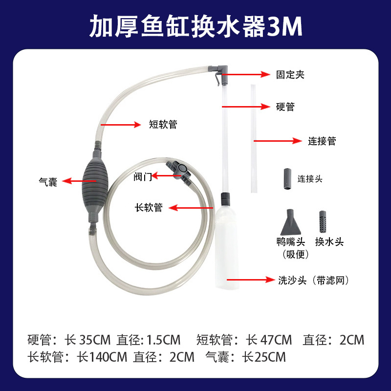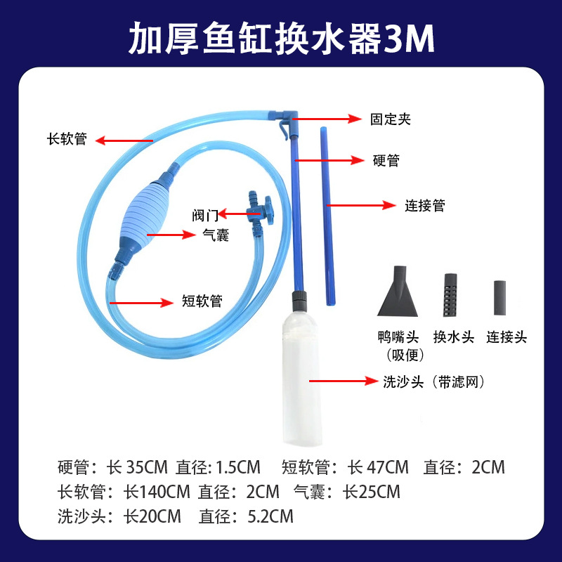 3米加厚新款鱼缸换水器(蓝色)50套/箱 ; 箱子尺寸85*53*53cm
