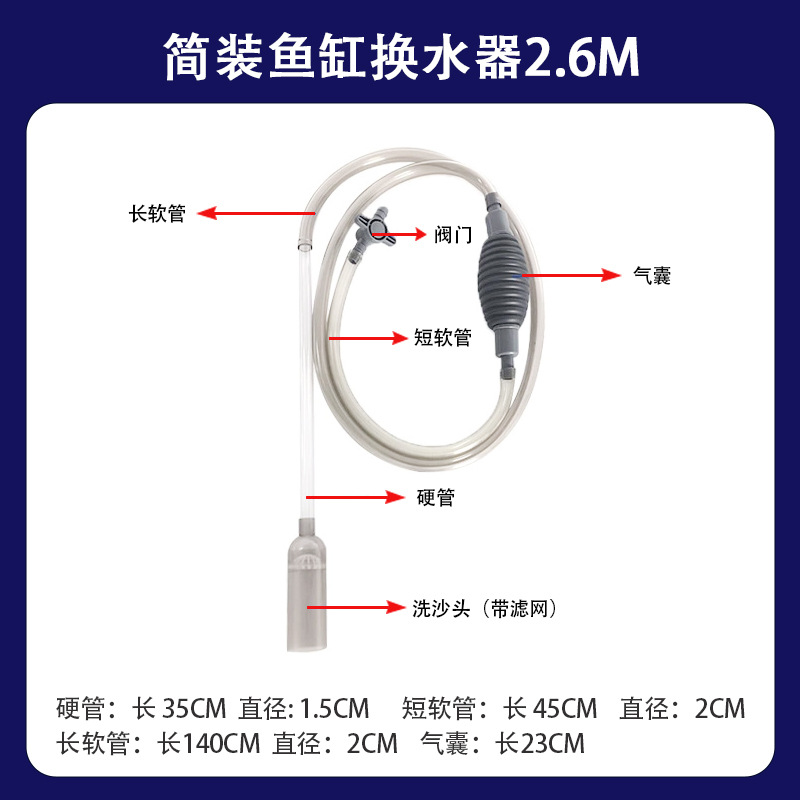2.6米加厚鱼缸换水器(蓝色)50套/箱 ; 箱子尺寸85*53*53cm