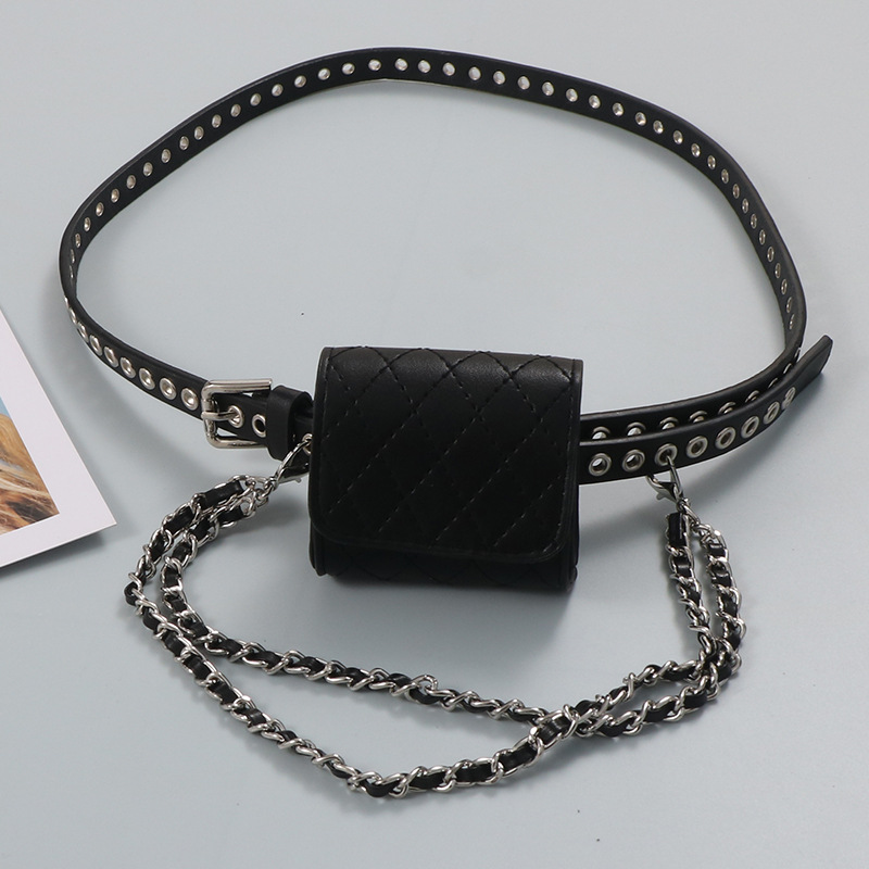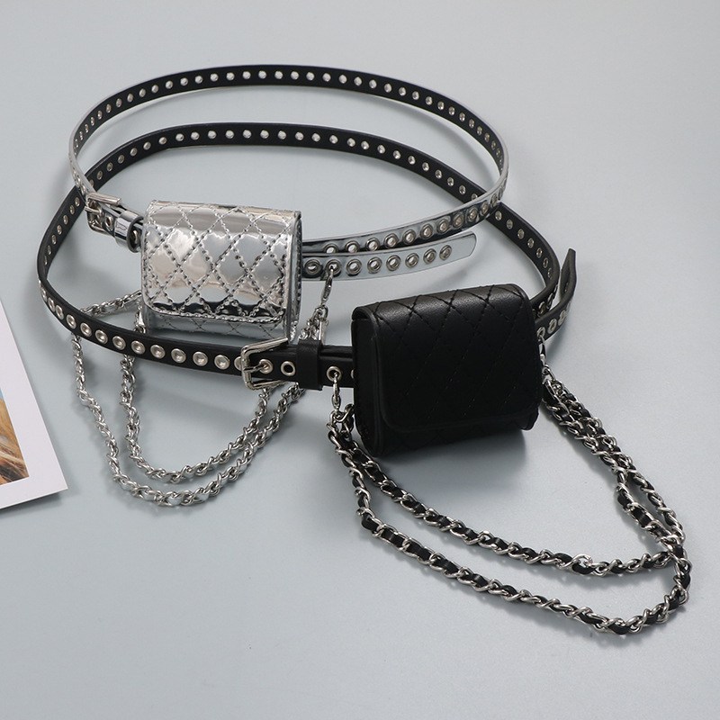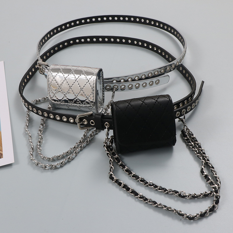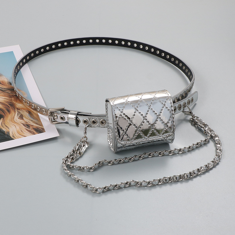 미니 Rhomboid 금속 바늘 눈 어린이 성인 가방 귀여운 올 매치 펀치 프리 벨트 작은 허리 가방 여성의 새로운