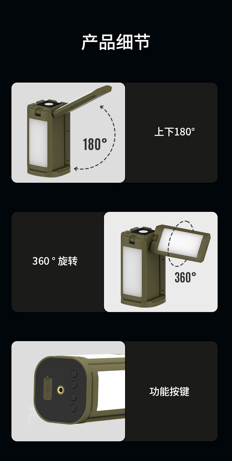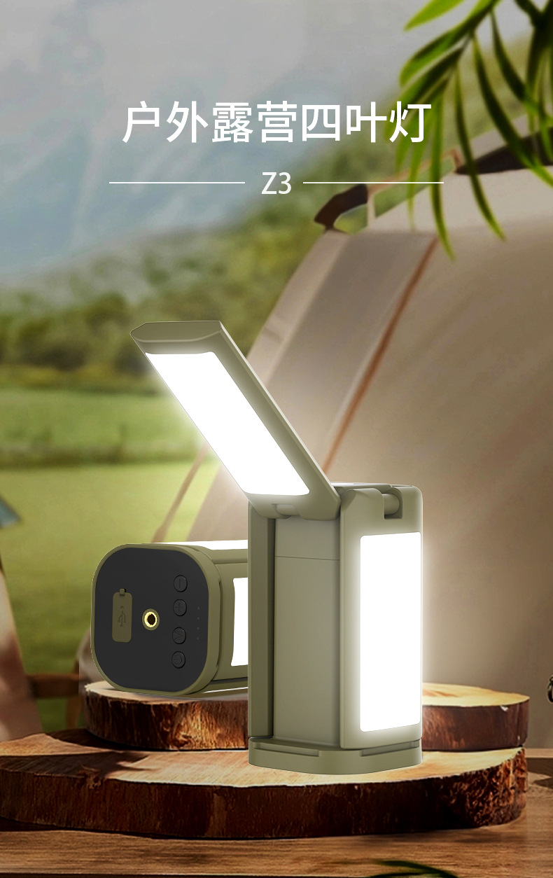 2024年私模专利全新款式多功能四叶折叠旋转露营灯