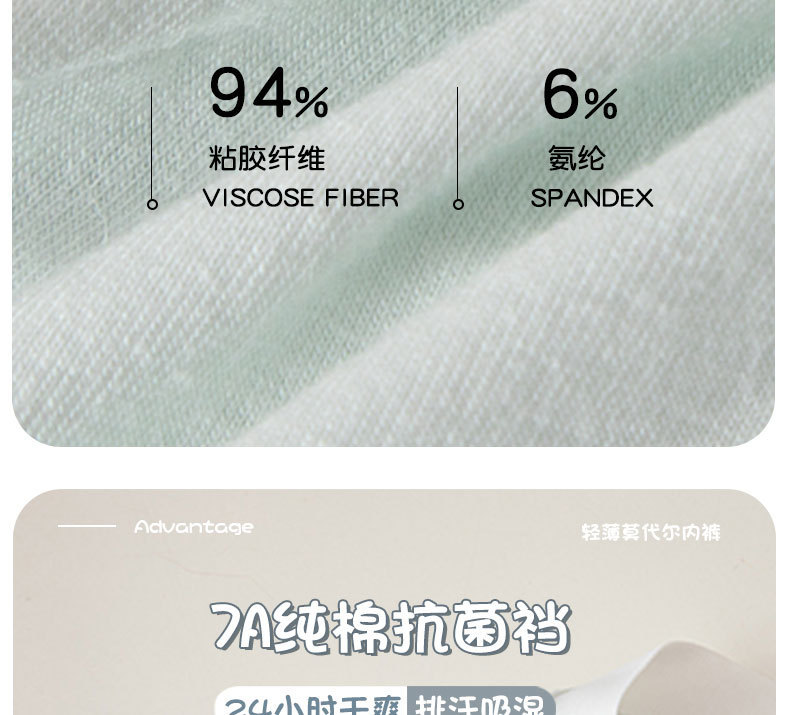 모달 여성 속옷 무봉제 순면 7A 항균 통기성 중간 허리 여성 삼각팬티 여학생 도매스토어 가기