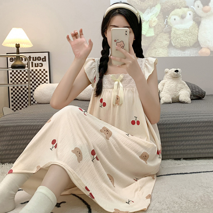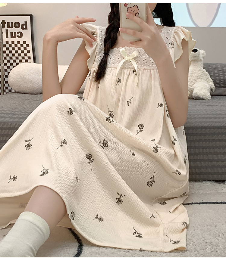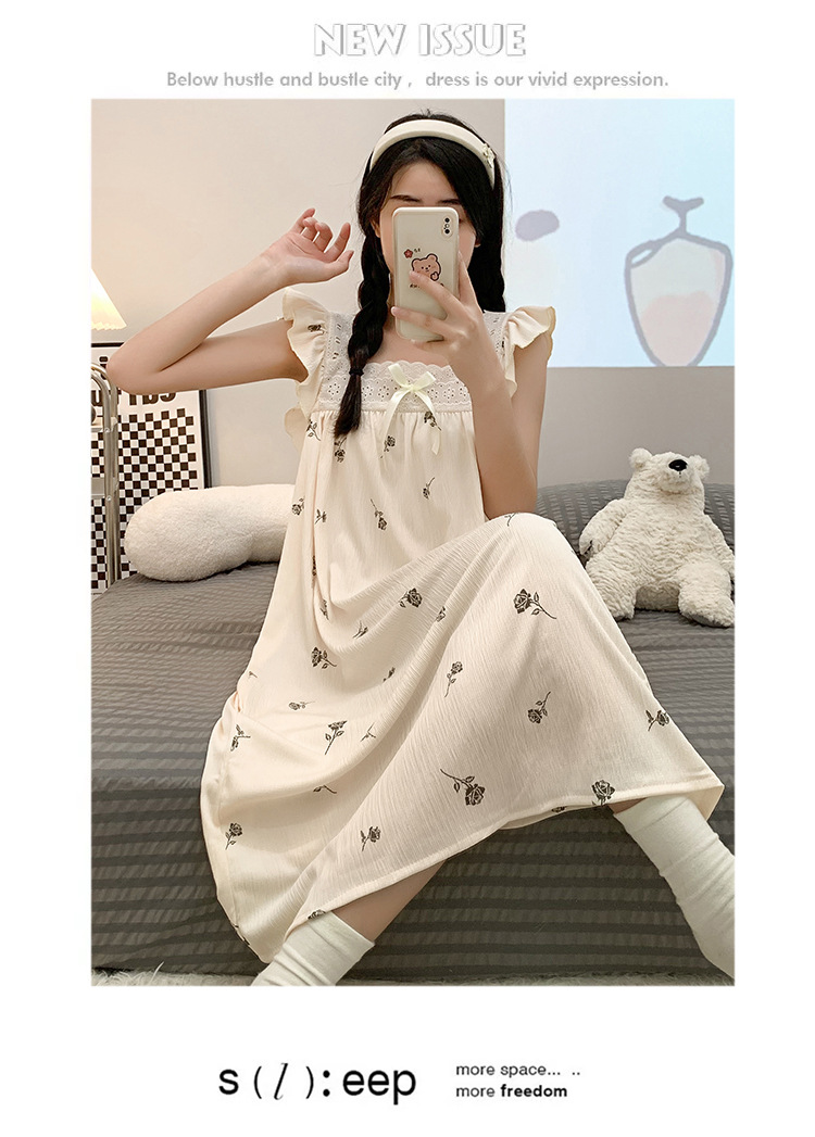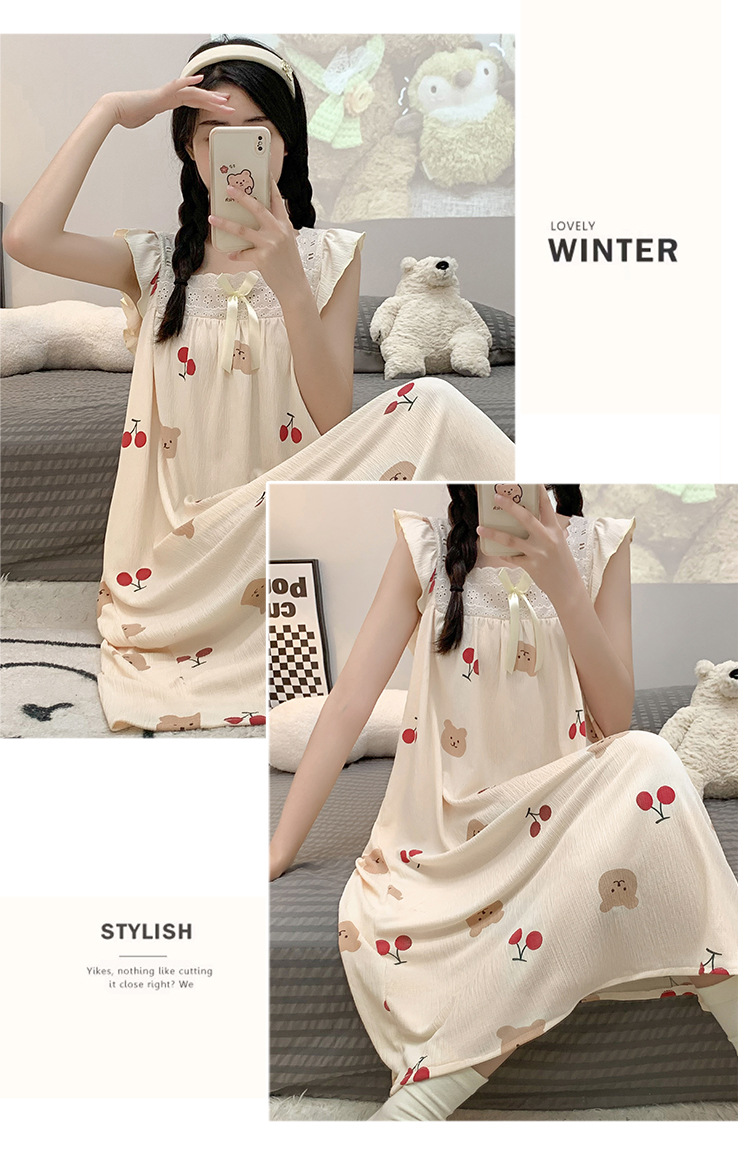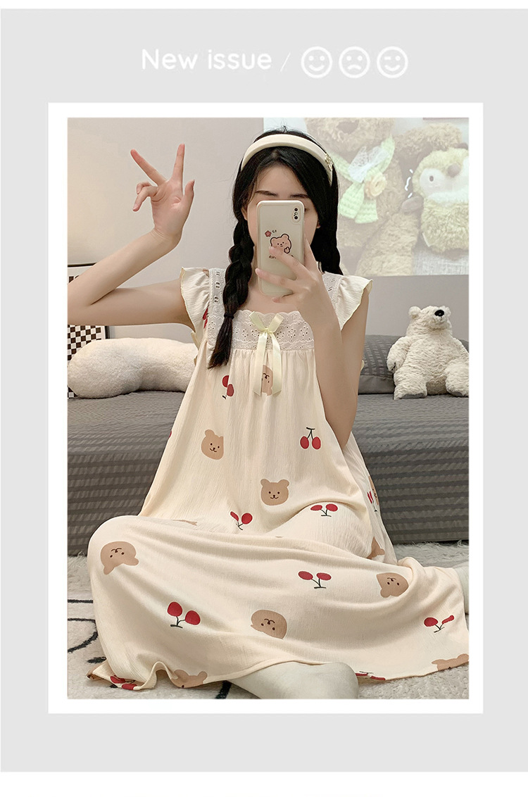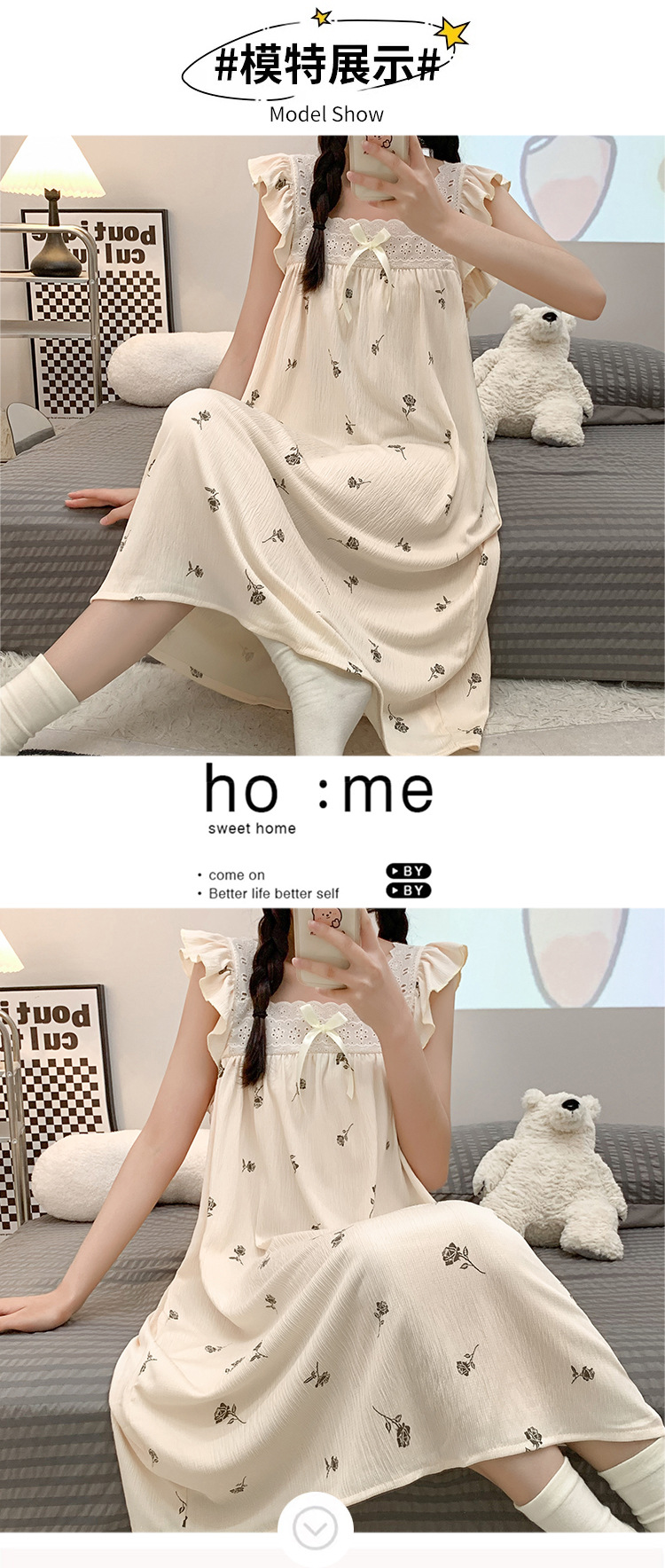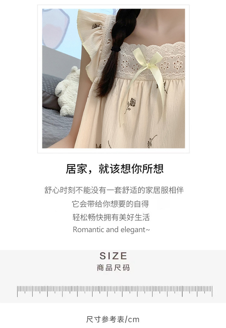 여름 주름진 천 스트레치 잠옷 여성의 달콤하고 사랑스러운 바람 멜빵 긴 잠옷과 뚱뚱한 240kg 뚱뚱한 MM 가정 옷스토어 가기