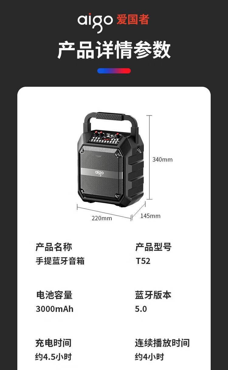 패트리어트 T52 블루투스 스피커 대용량 휴대용 야외 노래방 스퀘어 댄스 오디오 스피커 모바일스토어 가기