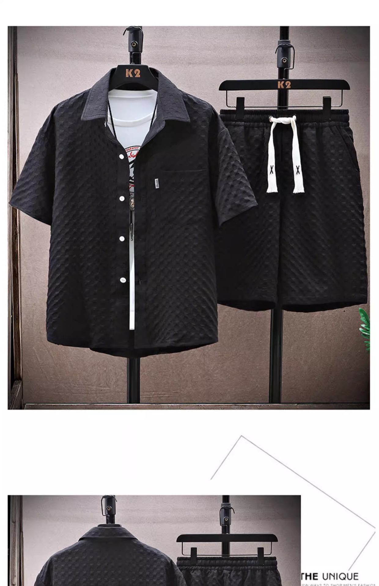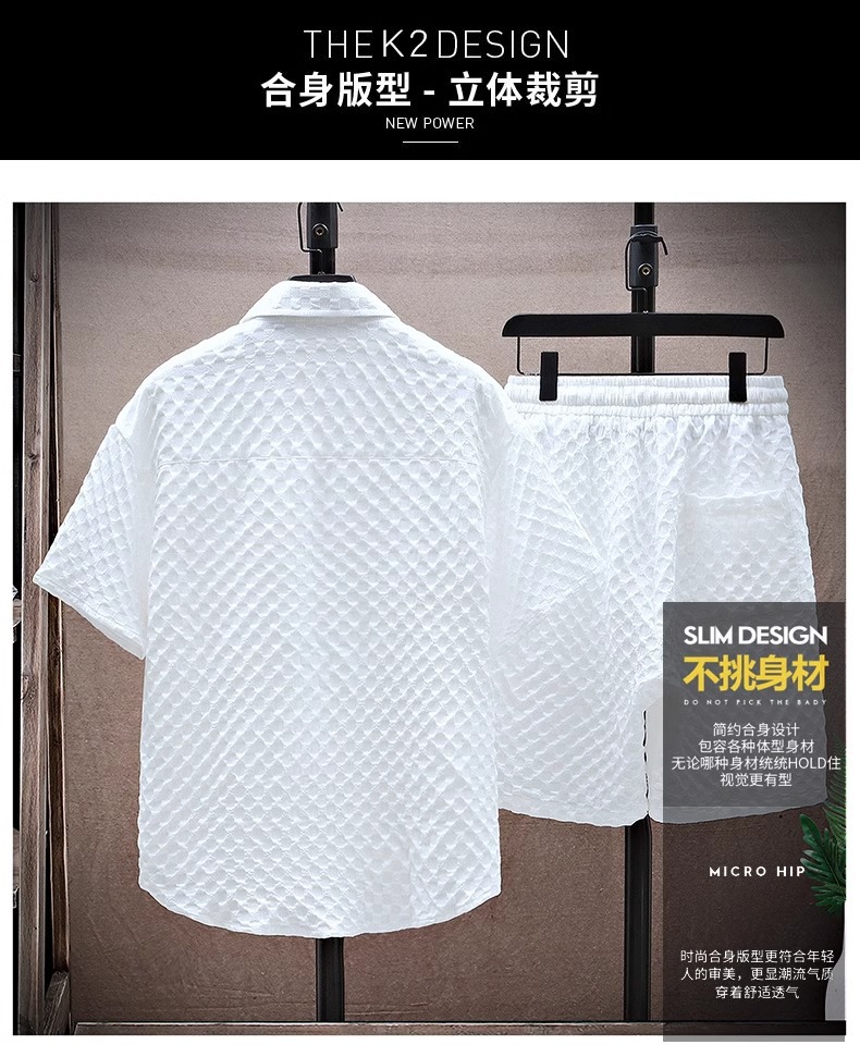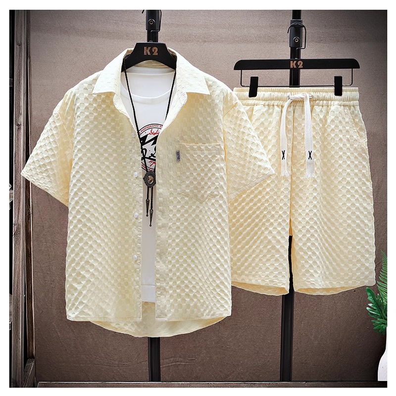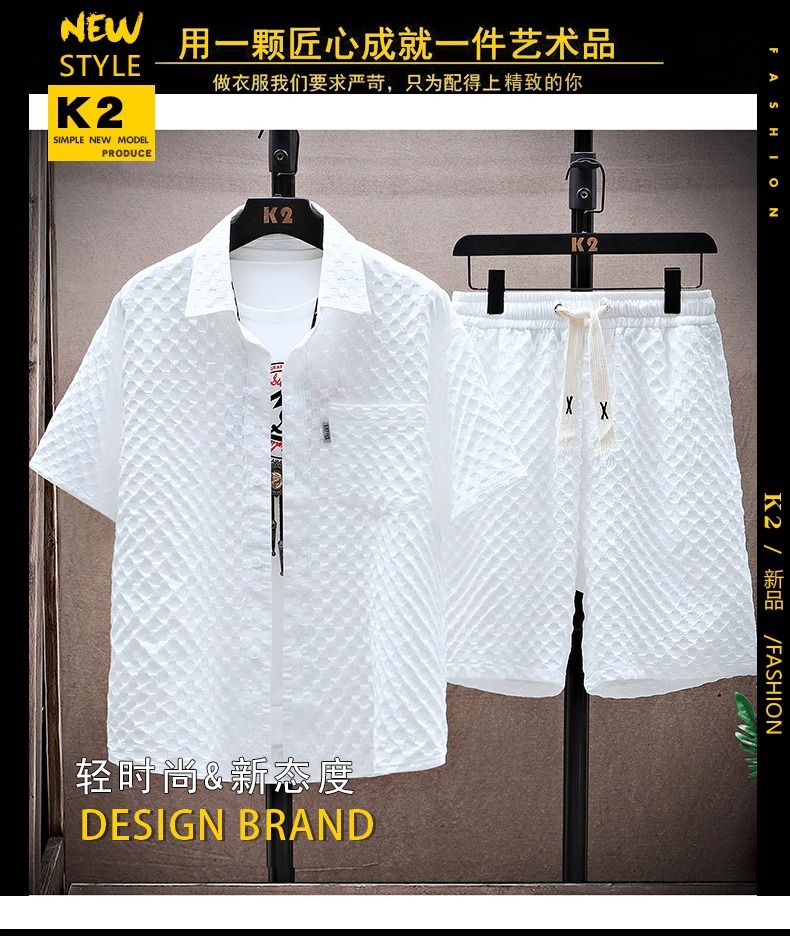 얇은 스포츠 레저 투피스 2024 여름 아이스 실크 세트 남성용 러피 잘 생긴 패션 반소매 셔츠 반바지 세트