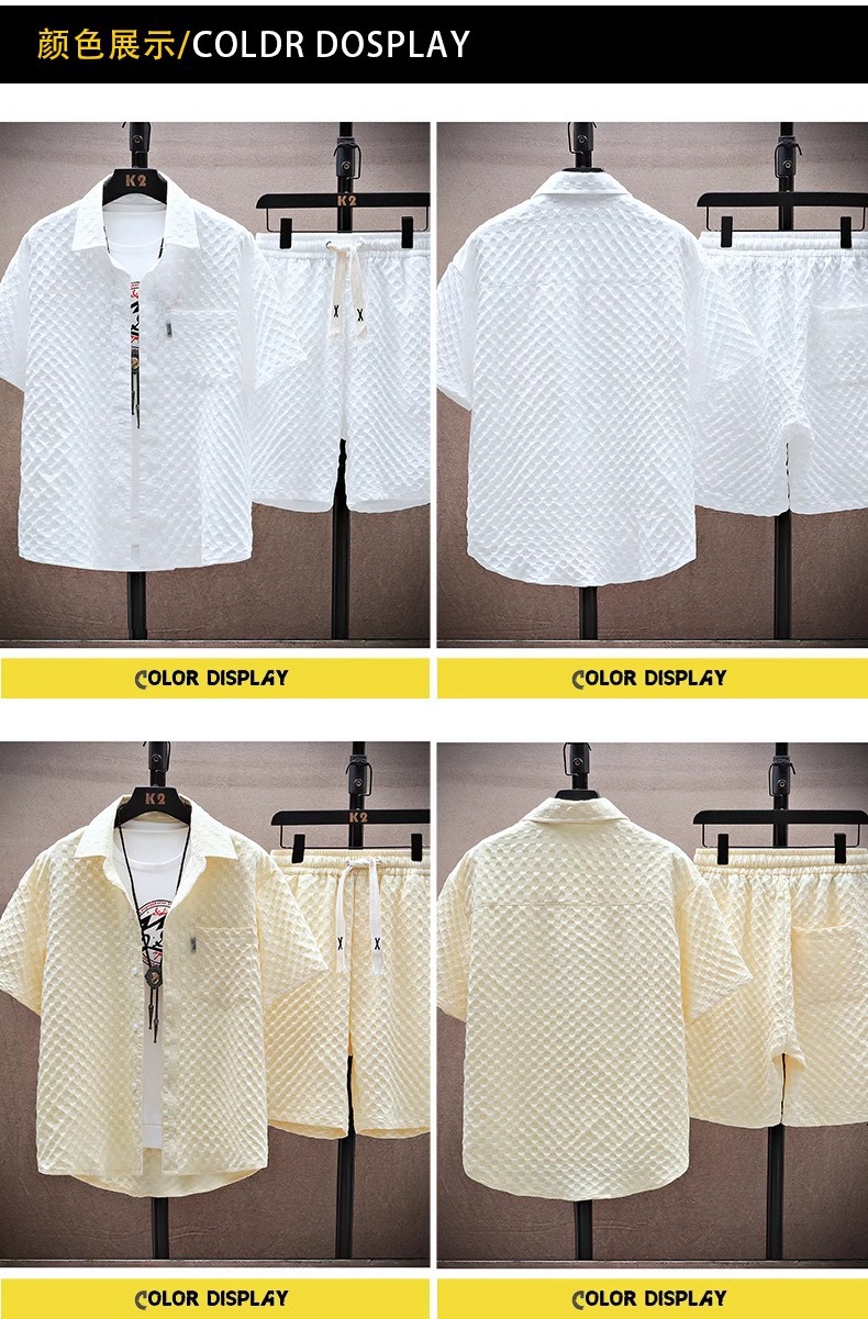 얇은 스포츠 레저 투피스 2024 여름 아이스 실크 세트 남성용 러피 잘 생긴 패션 반소매 셔츠 반바지 세트스토어 가기