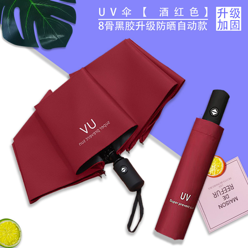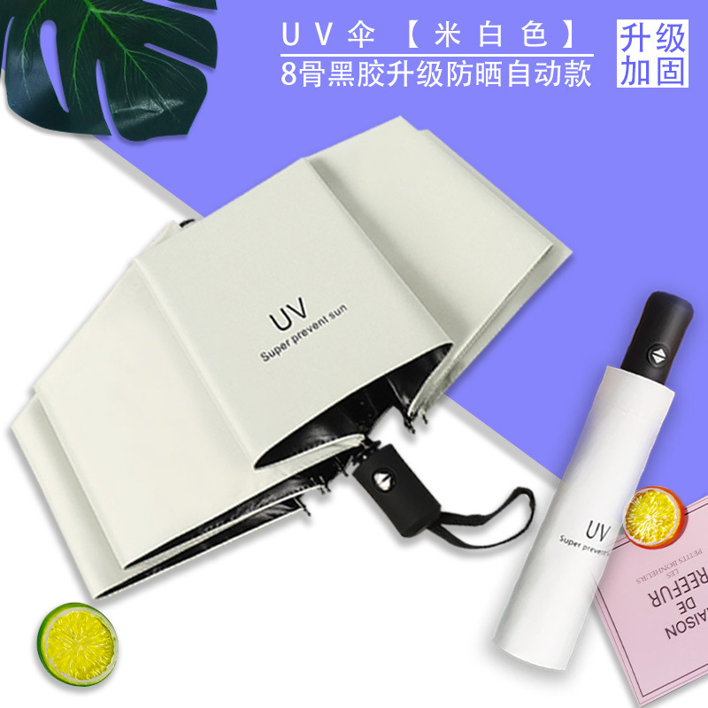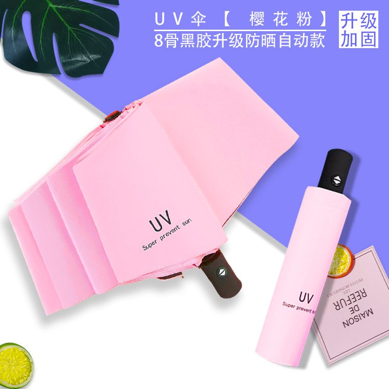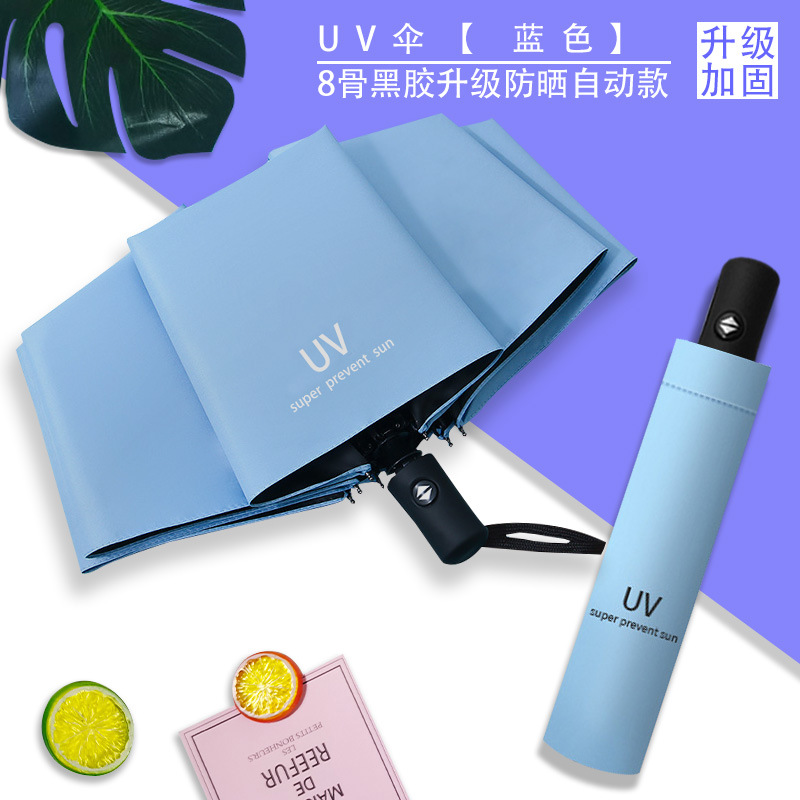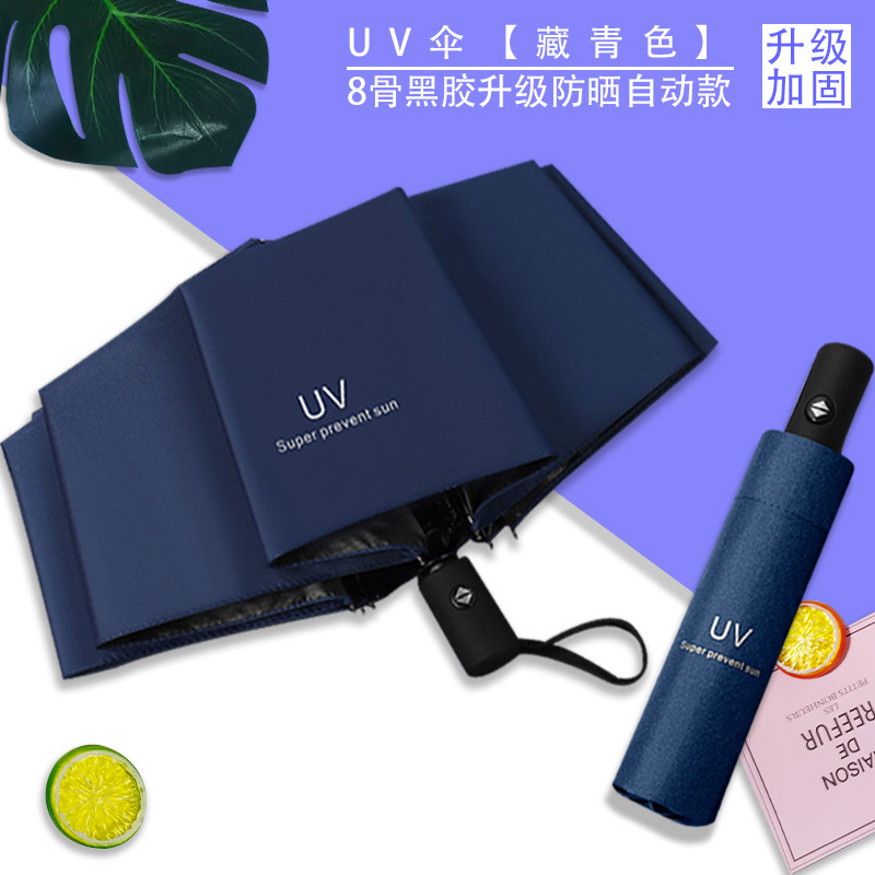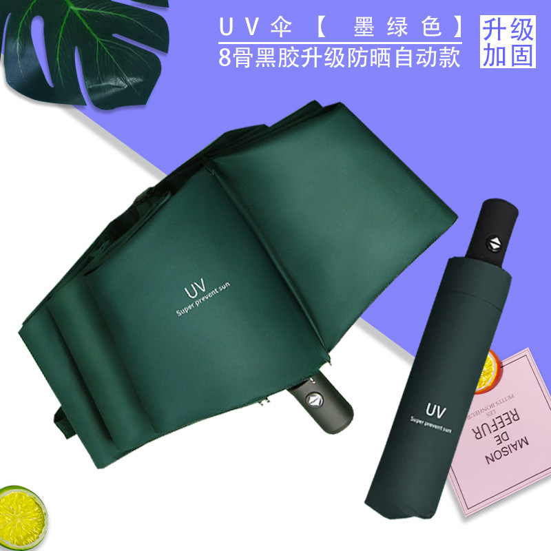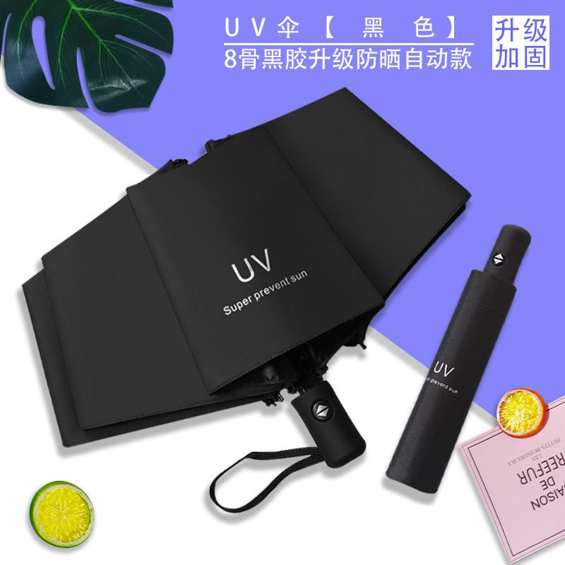 Uv 우산 여성의 하이 엔드 센스 블랙 고무 접이식 선 스크린 태양 우산 이중 목적 자동 도매 광고 우산 로고스토어 가기