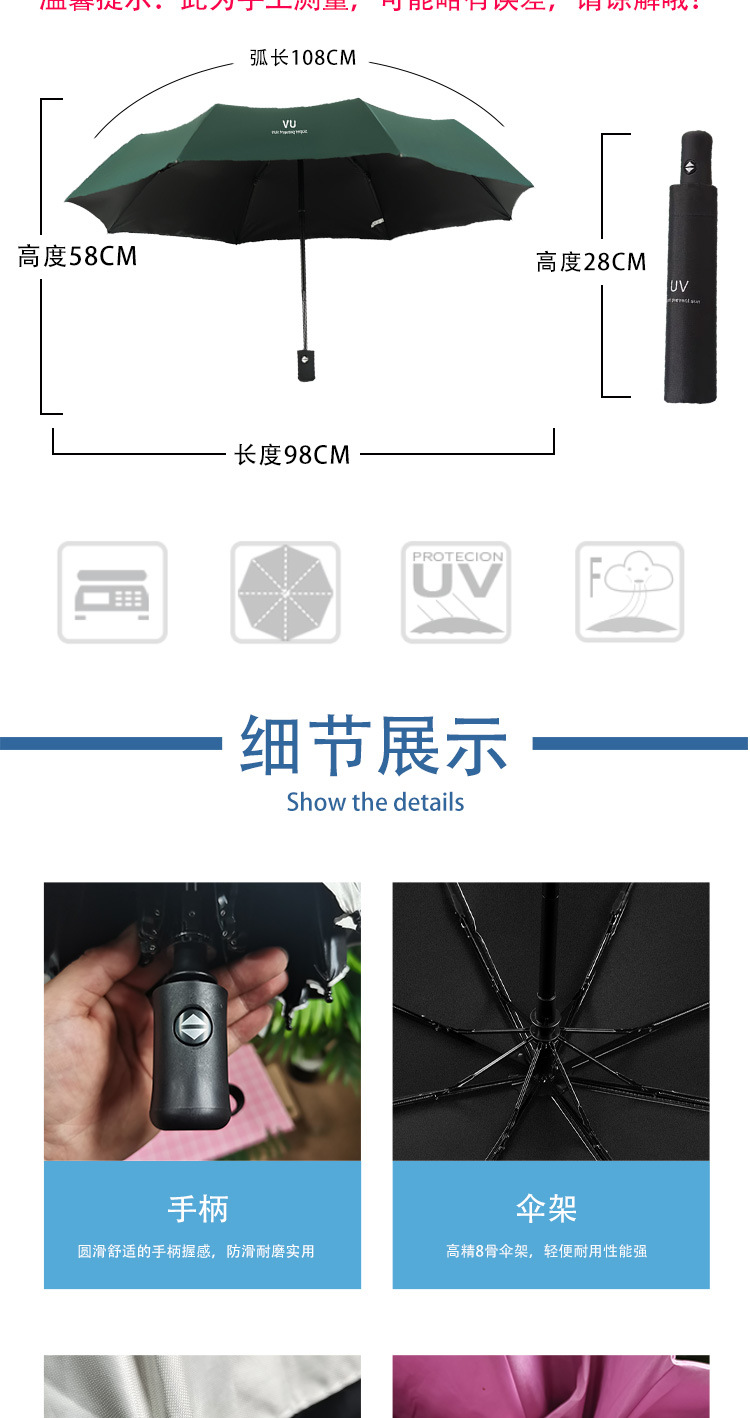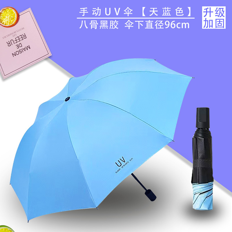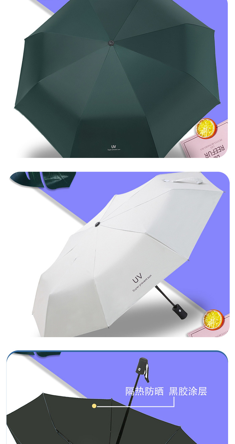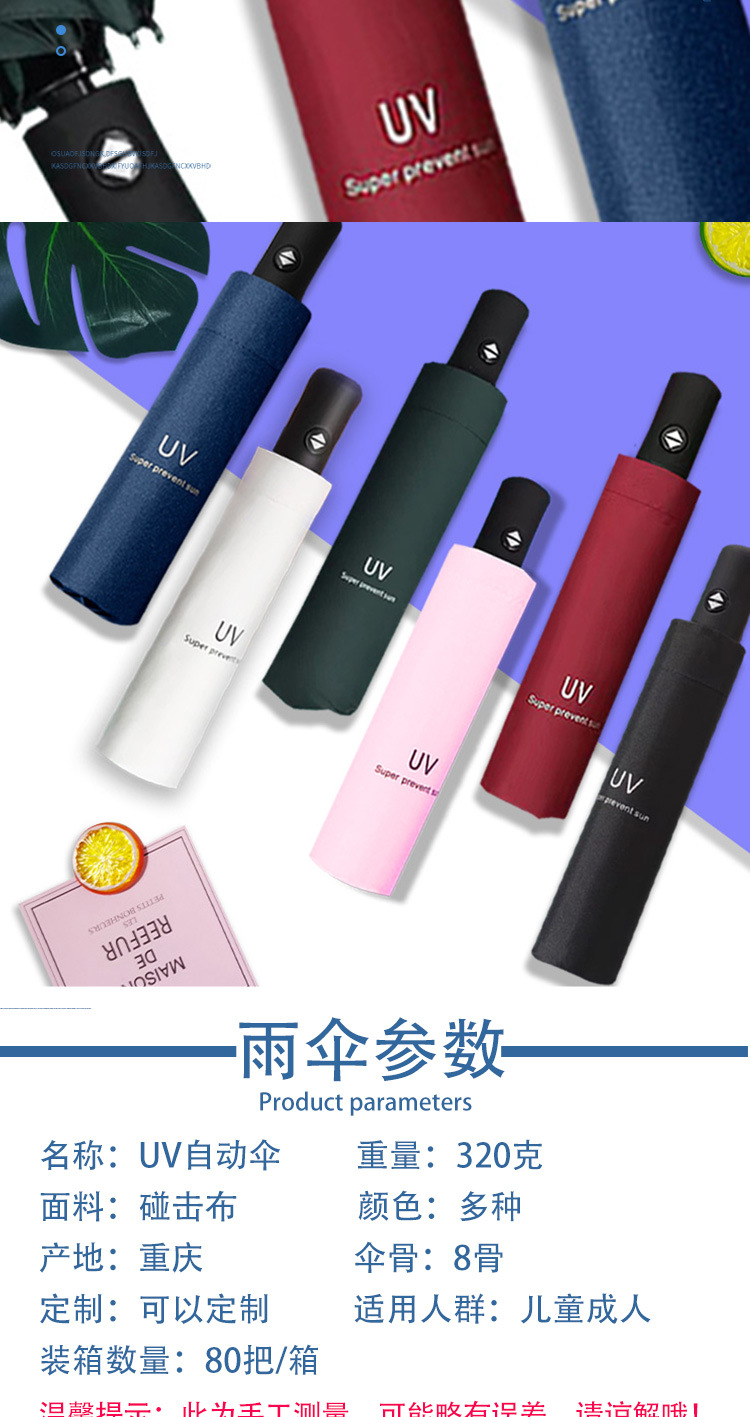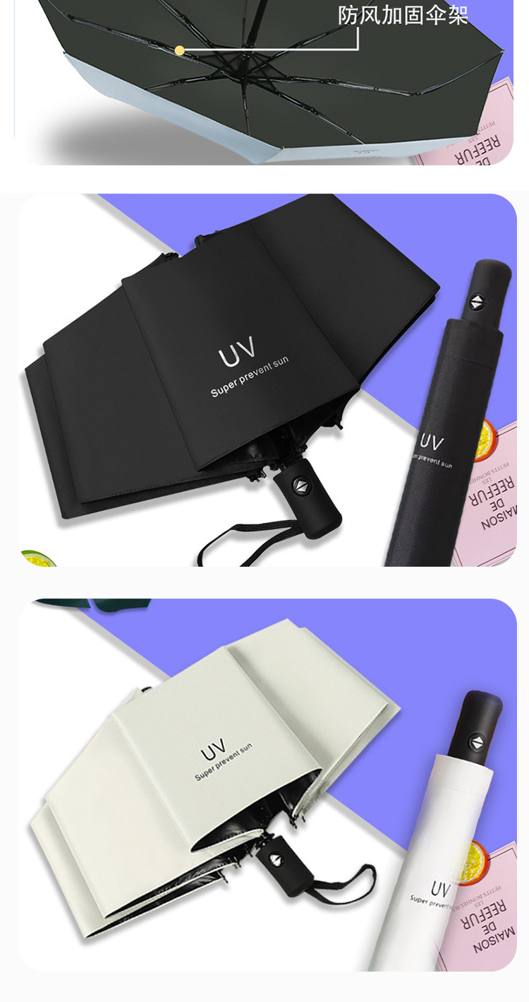 Uv 우산 여성의 하이 엔드 센스 블랙 고무 접이식 선 스크린 태양 우산 이중 목적 자동 도매 광고 우산 로고스토어 가기