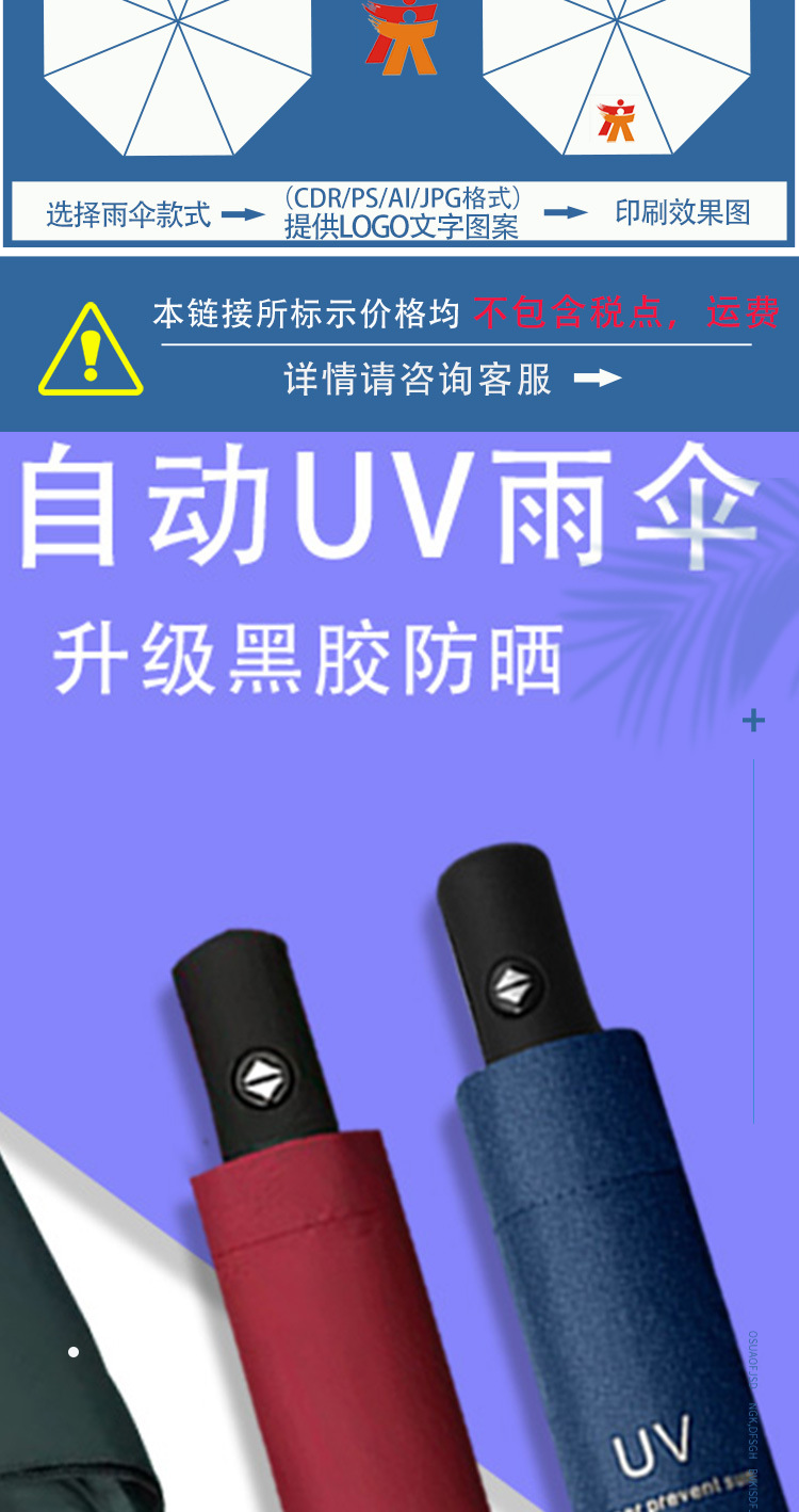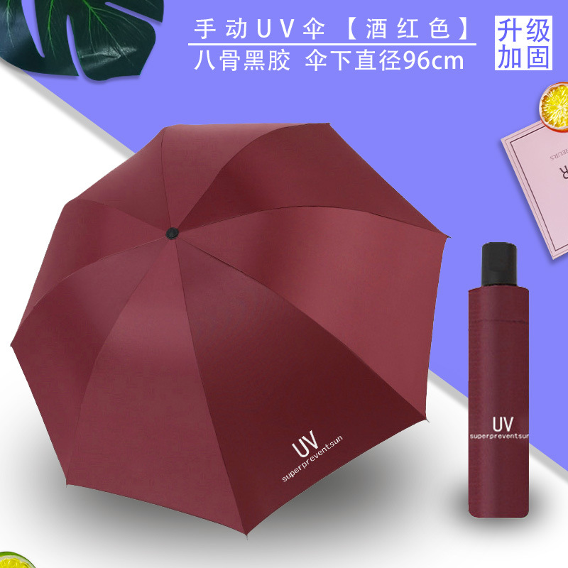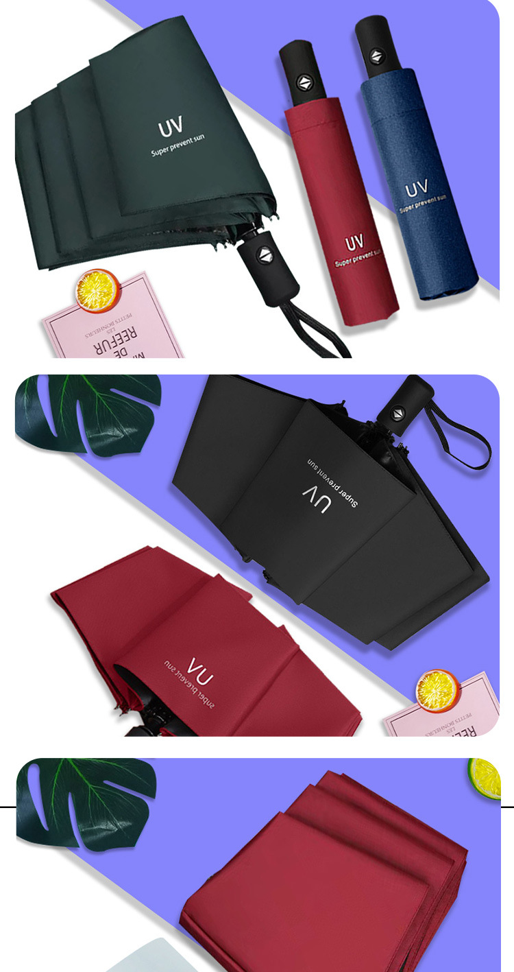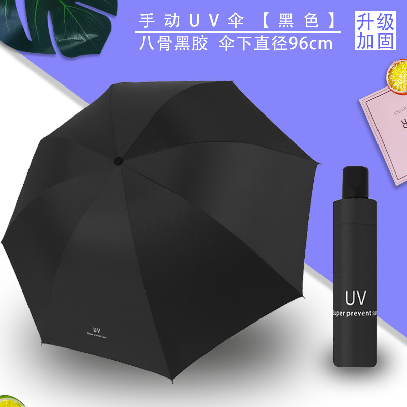 Uv 우산 여성의 하이 엔드 센스 블랙 고무 접이식 선 스크린 태양 우산 이중 목적 자동 도매 광고 우산 로고