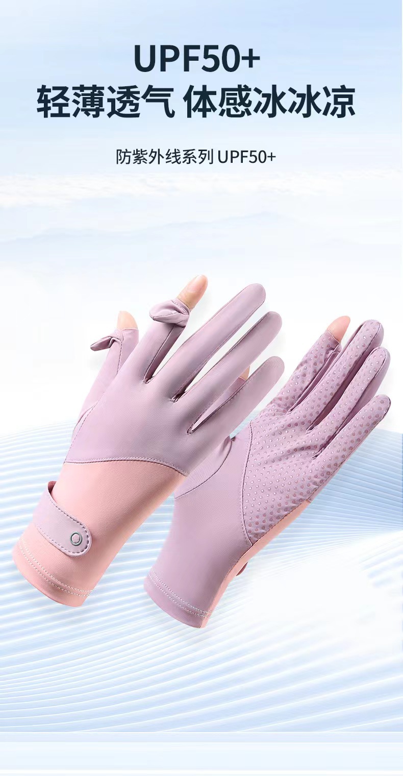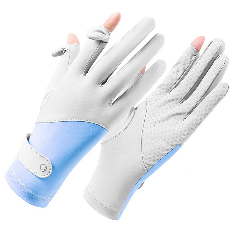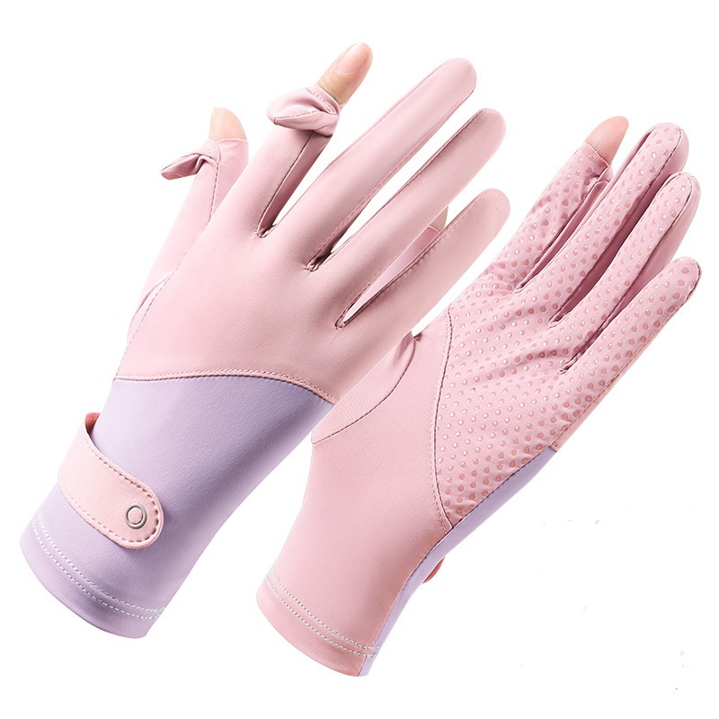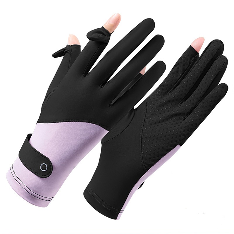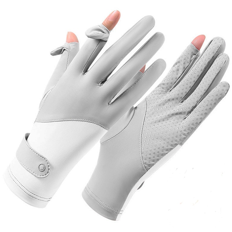 여성용 자외선 차단 장갑, 자외선 차단 얼음 실크, 여름 야외 사이클링 및 운전, 얇은 미끄럼 방지 및 누출 방지 두 손가락 장갑