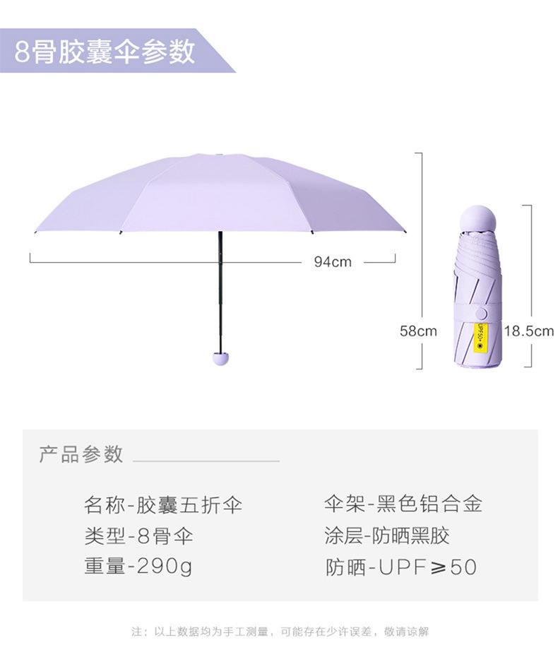 비닐 야외용 접이식 선물용 우산, 햇빛 가리개, 비가 오나 눈이 오나, 로고 인쇄 가능, 자외선 차단, 캡슐 디자인