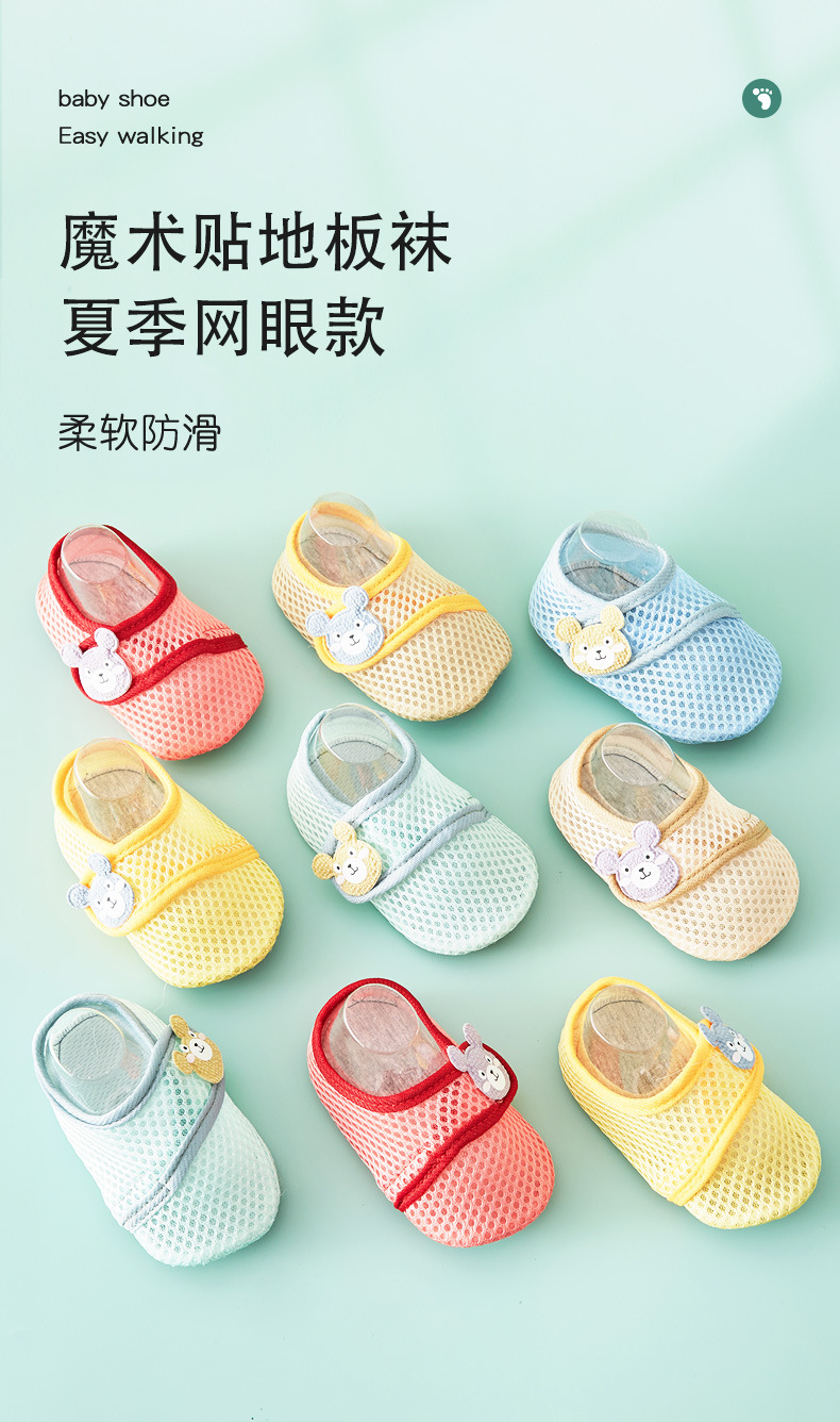 메쉬 바닥 양말 아기 여름 얇은 어린이 실내 미끄럼 방지 쿨 오프 유아 신발 홈 신발 양말 커버