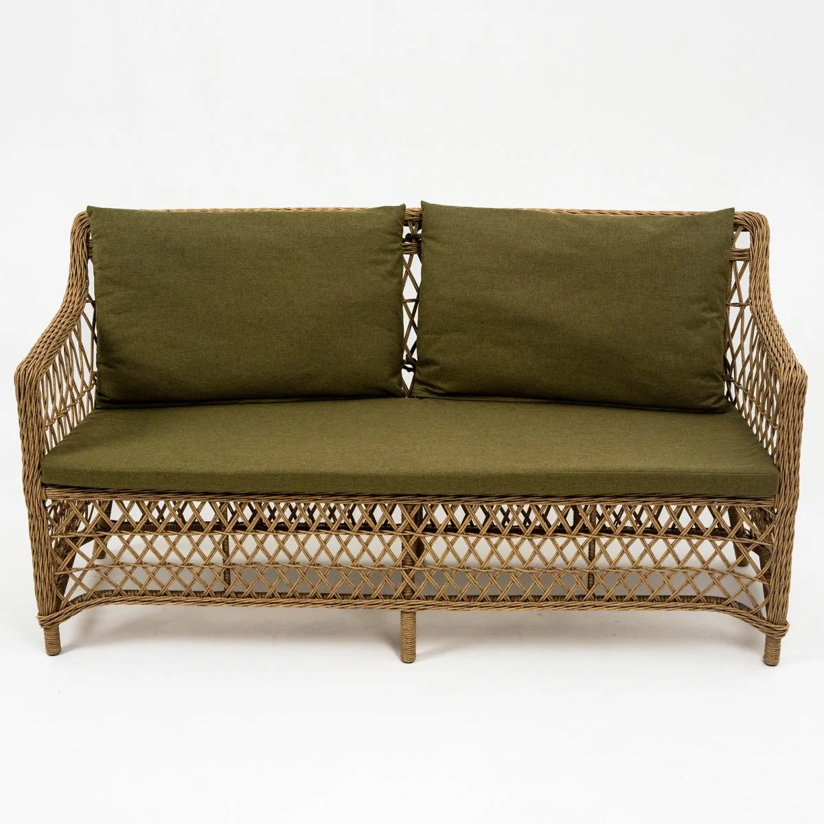 • 160CM 사각등 더블중공소파 [브라운라탄밀리터리그린쿠션] (180*60*H89CM)