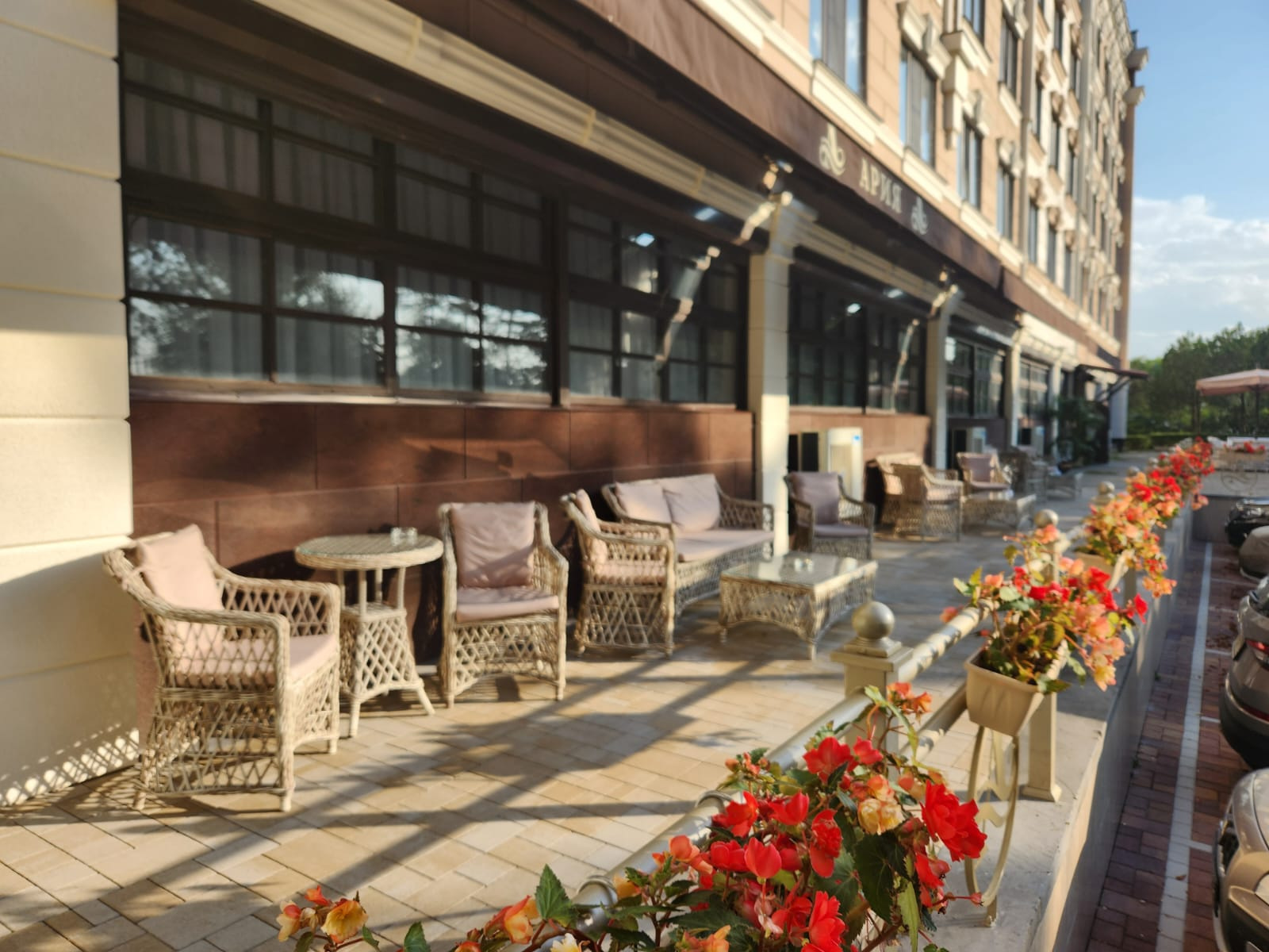 • 사각 등받이 중공 식탁 의자 4개 + 중공 등나무 원형 테이블 150CM [브라운 아미 그린 쿠션]