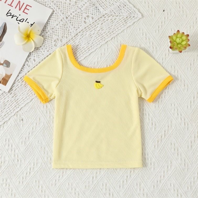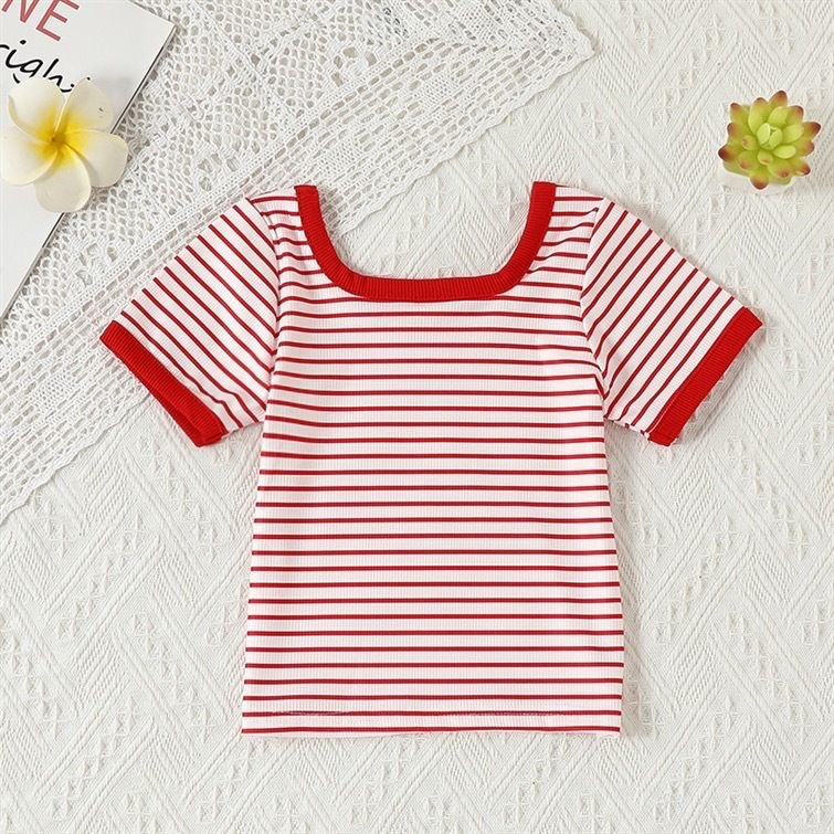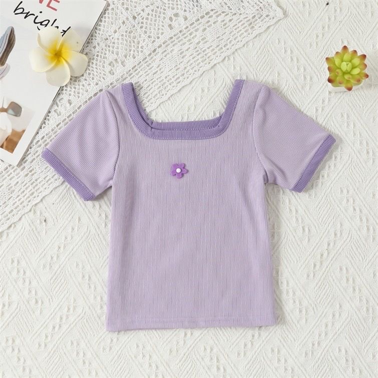 2024 새로운 티셔츠 여름 새로운 소녀 아기 반팔 최고 패션 캐주얼 올 매치 귀여운 캔디 컬러 트렌디스토어 가기