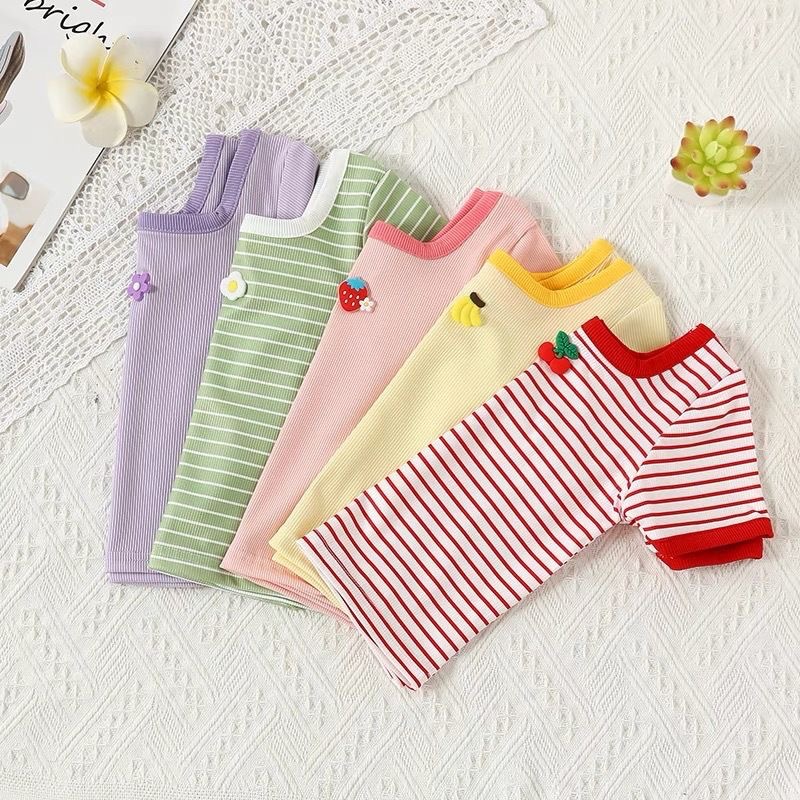 2024 새로운 티셔츠 여름 새로운 소녀 아기 반팔 최고 패션 캐주얼 올 매치 귀여운 캔디 컬러 트렌디