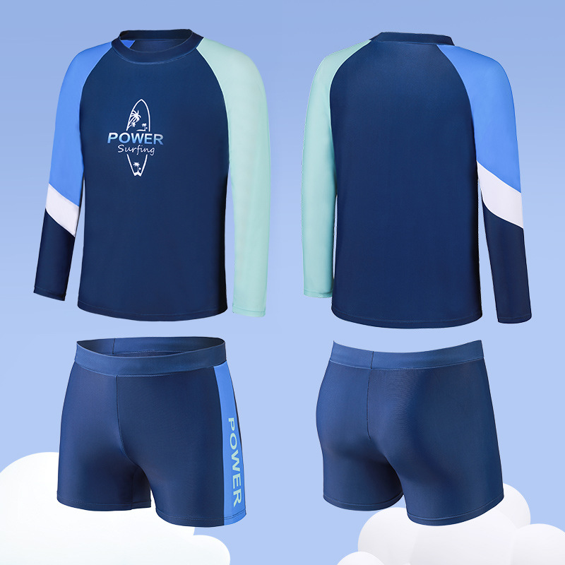 뚱뚱한 어린이, 큰 어린이 및 튼튼한 어린이를 위한 분할 긴팔 자외선 차단 수영복, 속건성 및 염소 방지 UPF50+ 비치 투피스 세트