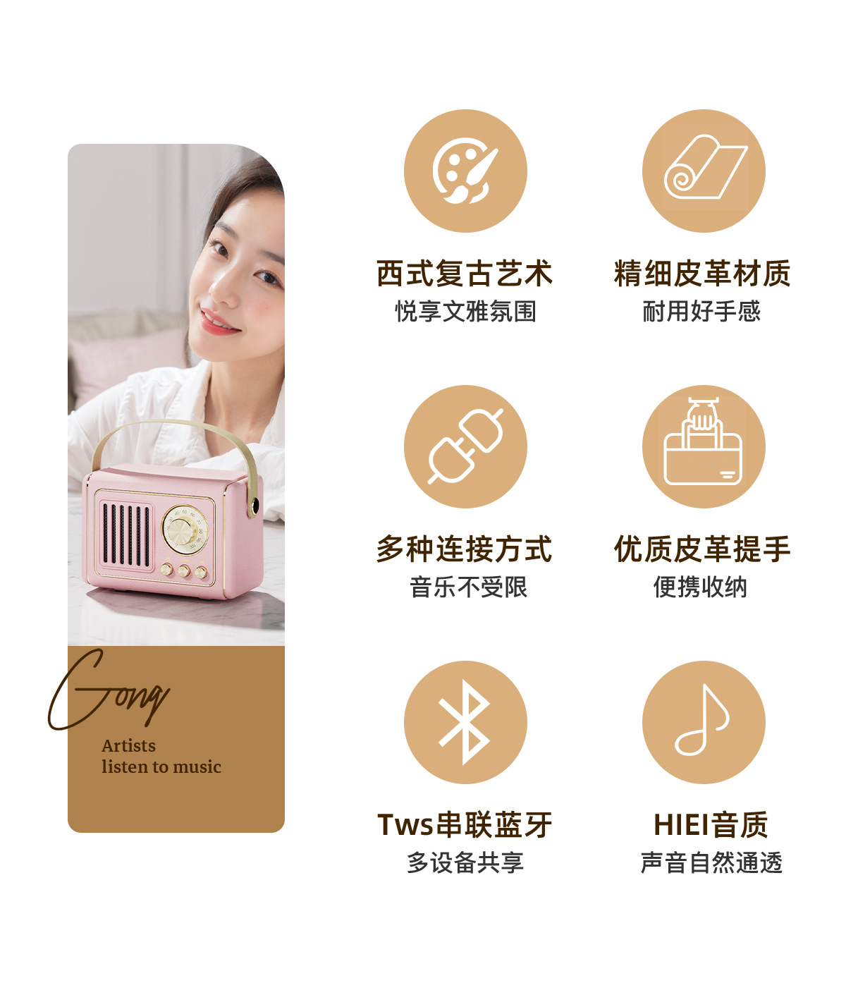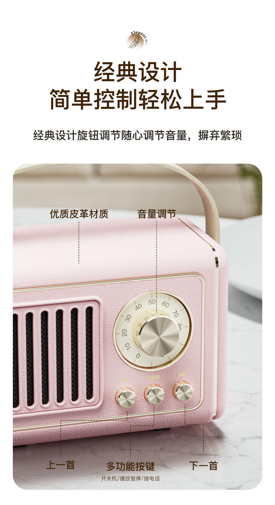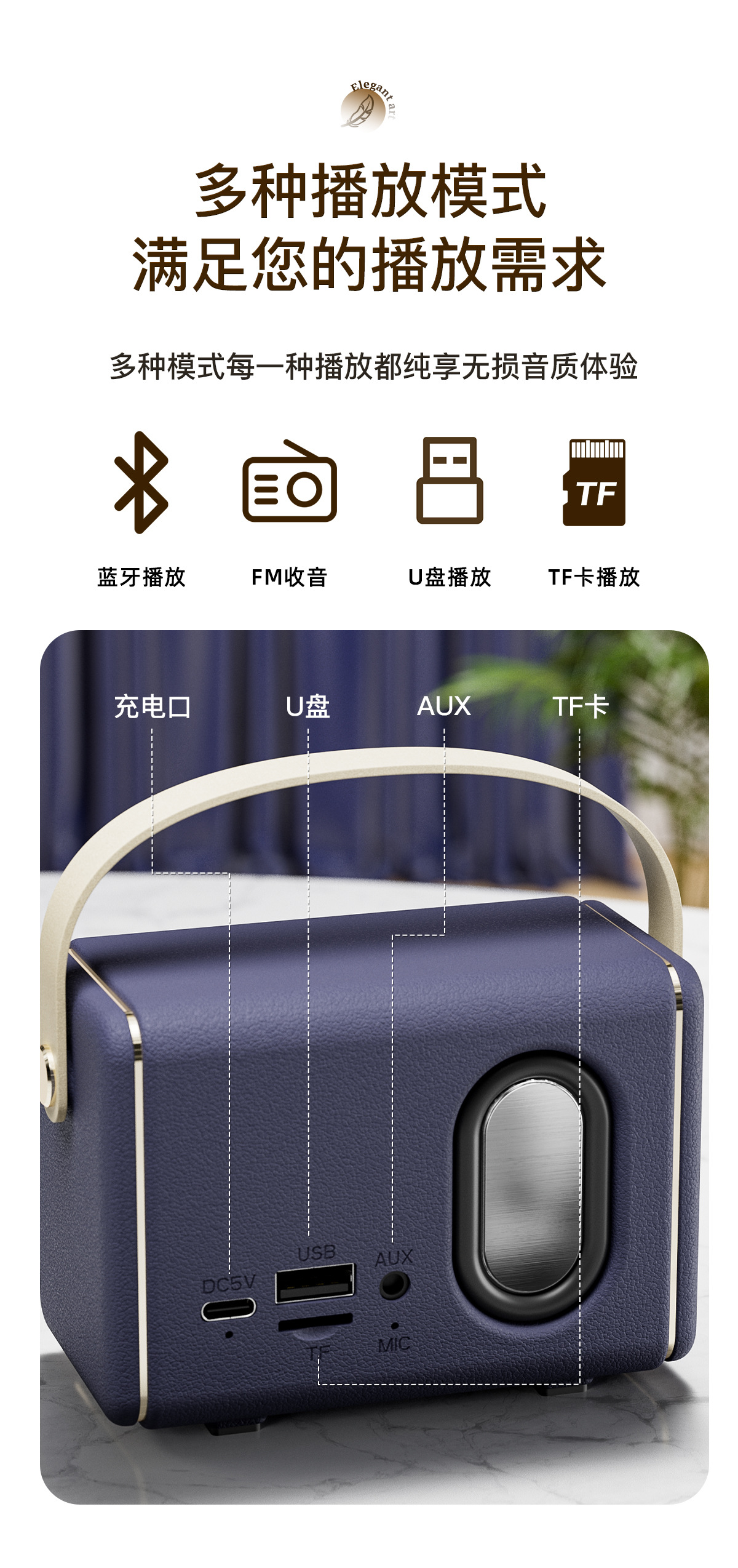 功能:蓝牙连接播放,收音机 免提通话,TF卡播放