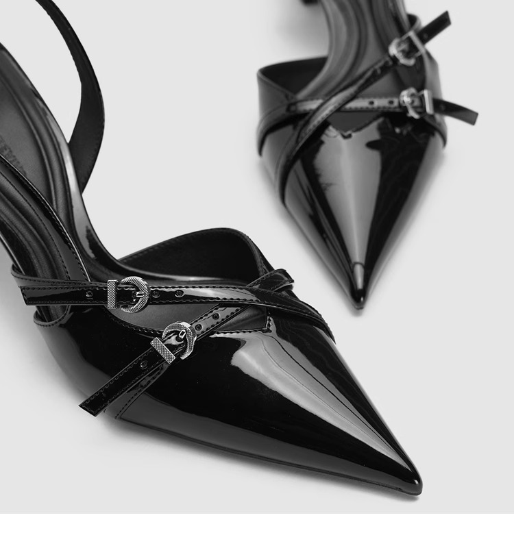 VR2025 여름 신작 뾰족한 고양이 발가락 샌들 여성용 영국식 하이힐 버클 스트랩 하이힐 여성용