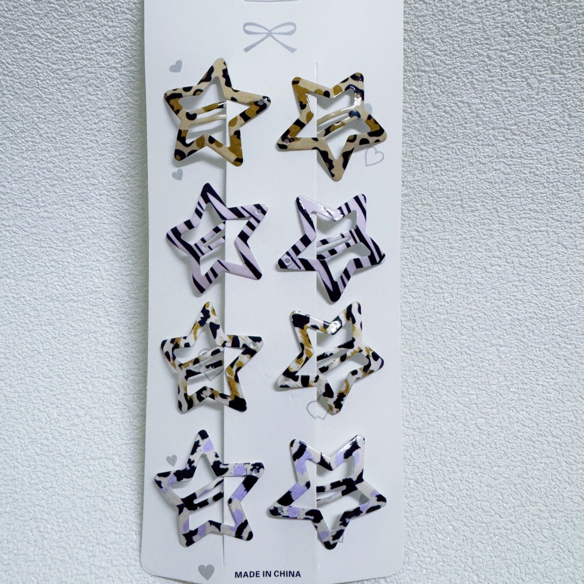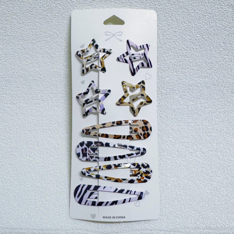 국경 간 그물 레드, 패션 가방 레오파드 무늬 bb 클립 다섯개 별 얼룩말 프린트 복고풍 머리핀 대외 무역 도매