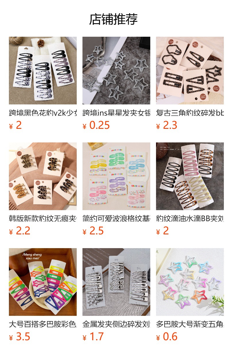 국경 간 그물 레드, 패션 가방 레오파드 무늬 bb 클립 다섯개 별 얼룩말 프린트 복고풍 머리핀 대외 무역 도매스토어 가기