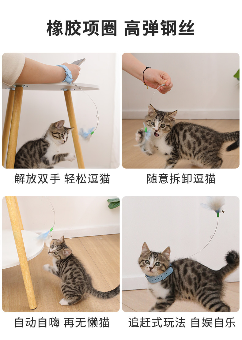 고양이 장난감 머리에 착용하는 고양이 방울 목걸이, 새끼 고양이 자가 놀이 및 지루함 해소용 깃털 목걸이, 게으른 사람들을 위한 고양이 장난감 목걸이스토어 가기