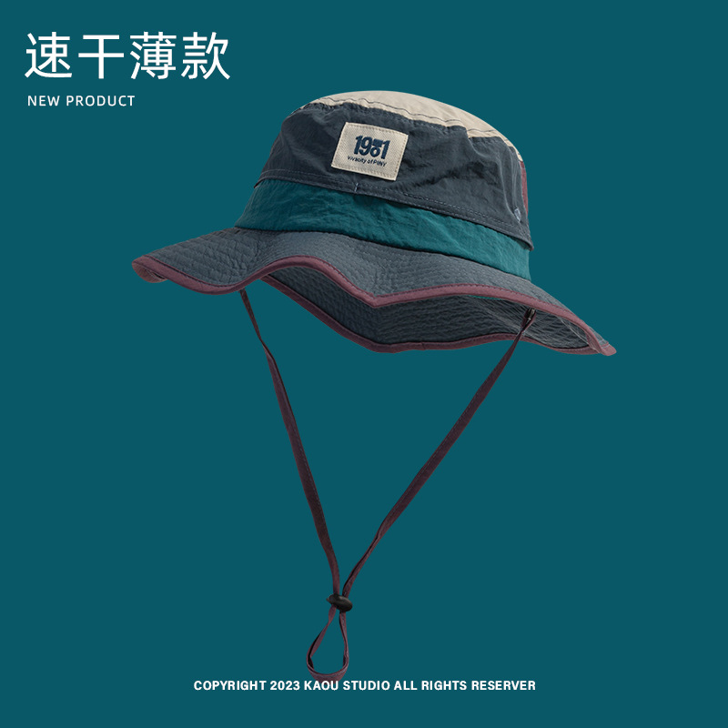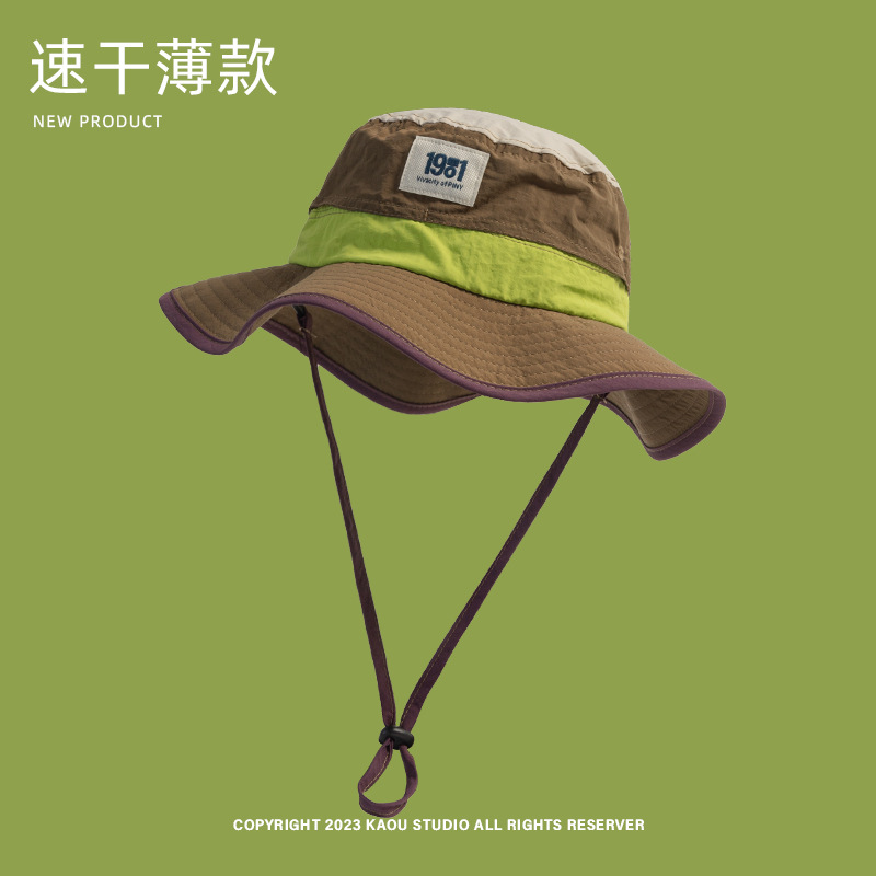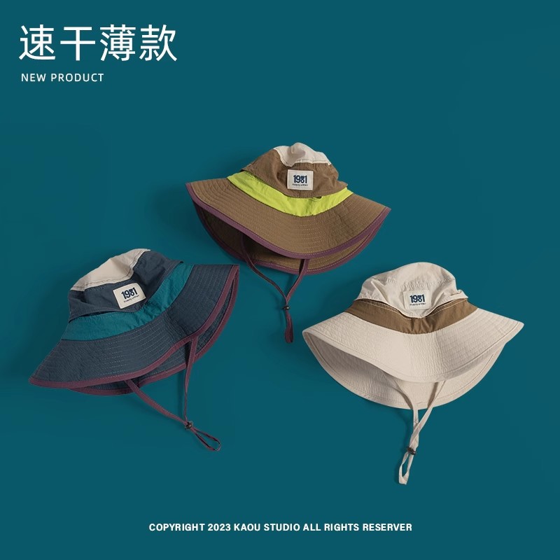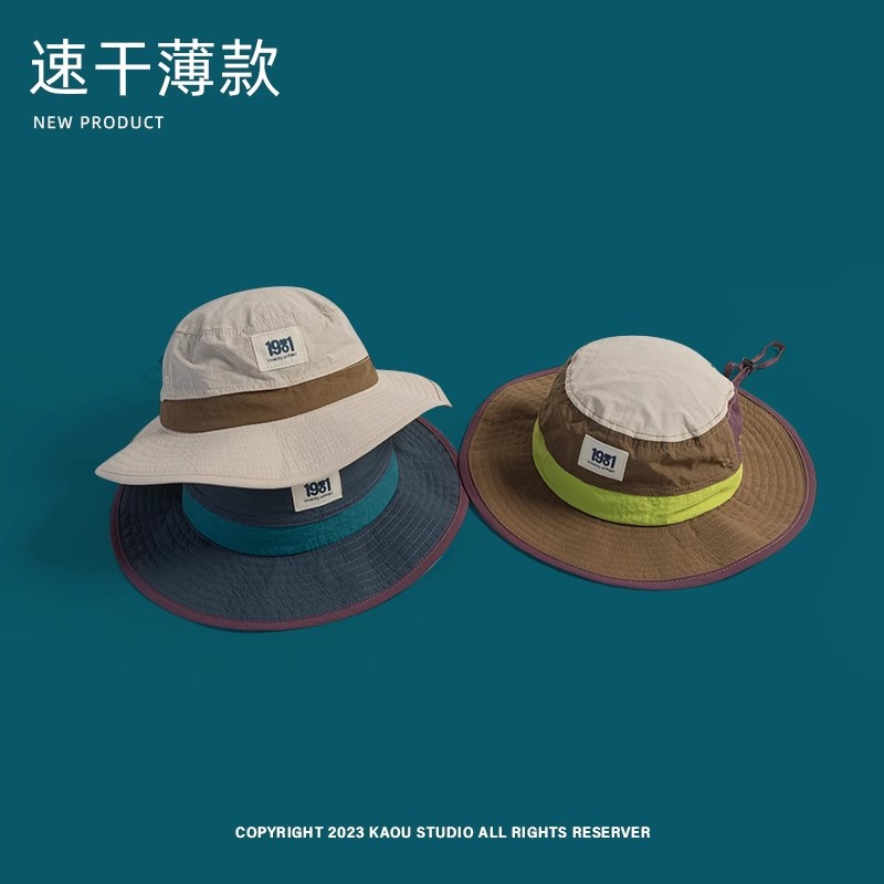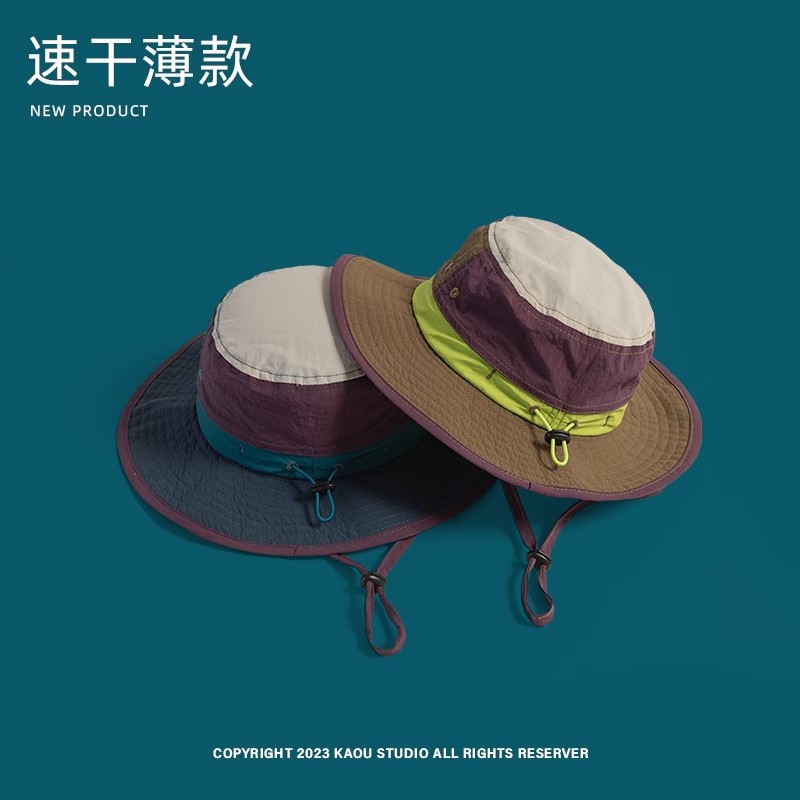 남성과 여성의 복고풍 색상 매칭 개인화 된 어부 모자 야외 빠른 건조 통기성 얇은 태양 모자 부모-자식 선크림 등반 모자 트렌디스토어 가기