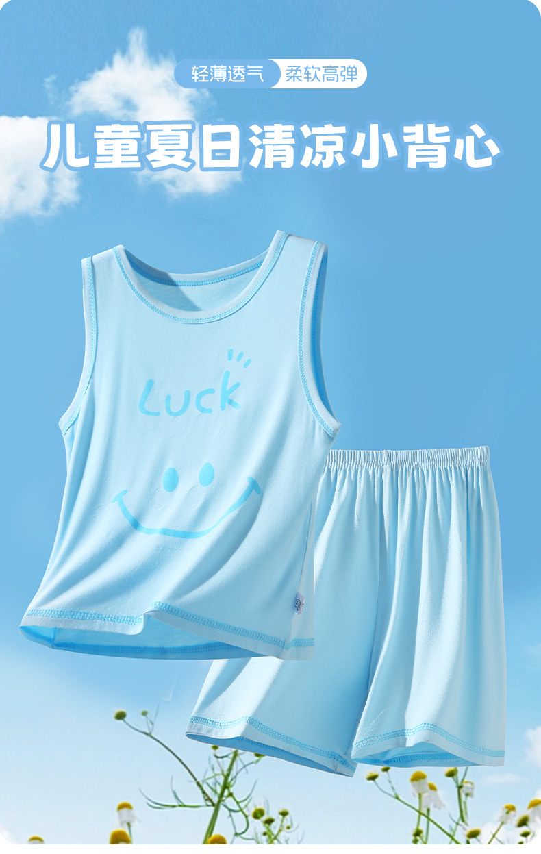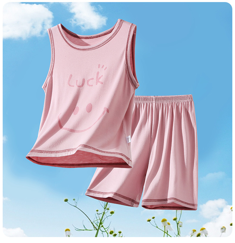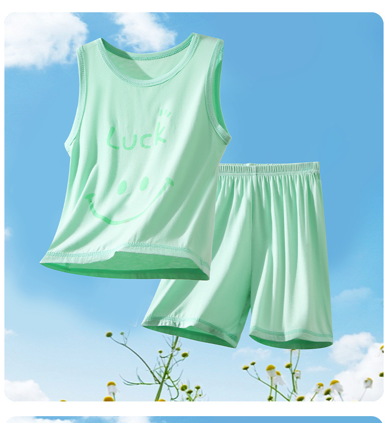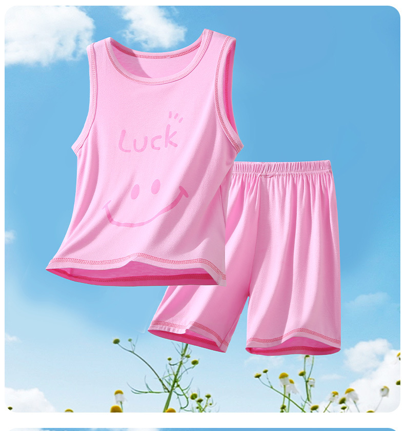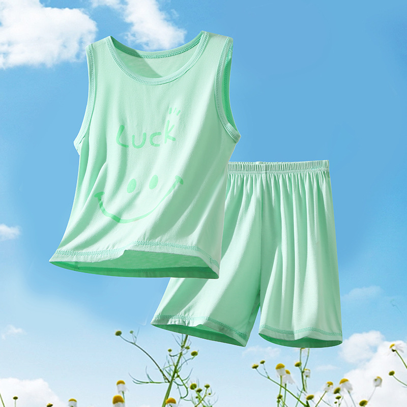 어린이 조끼 세트 여름 새 소년과 소녀 모달 민소매 반바지 투피스 아기베이스 셔츠 아동복