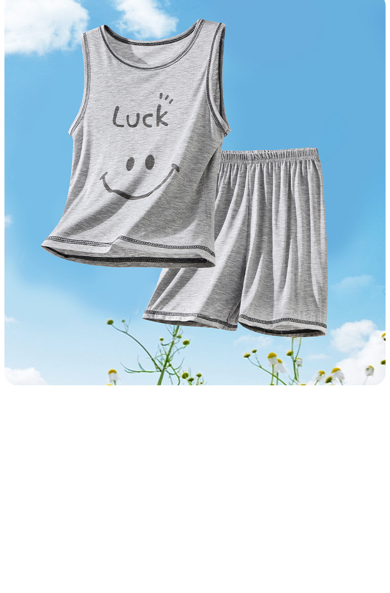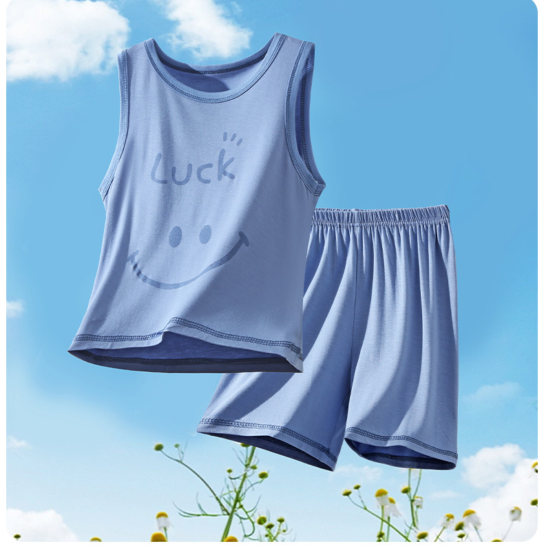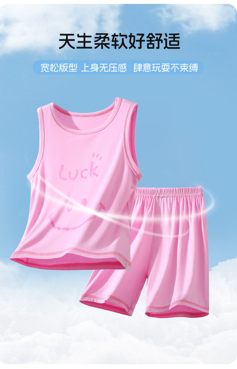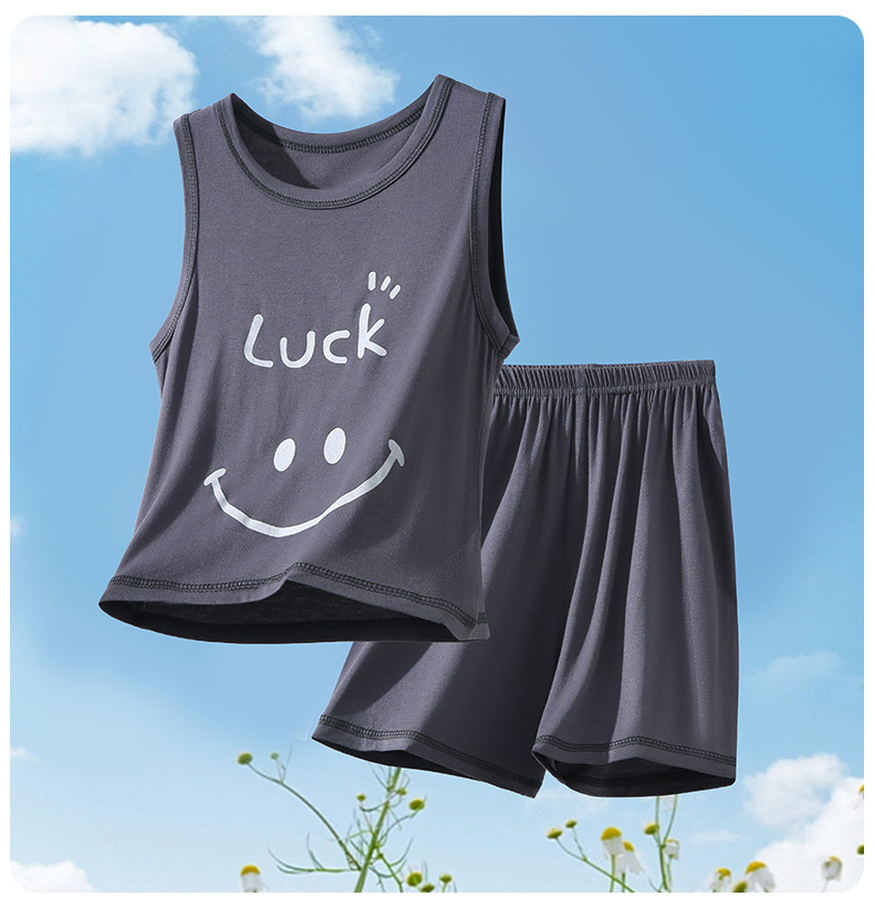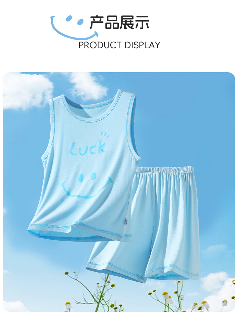 어린이 조끼 세트 여름 새 소년과 소녀 모달 민소매 반바지 투피스 아기베이스 셔츠 아동복