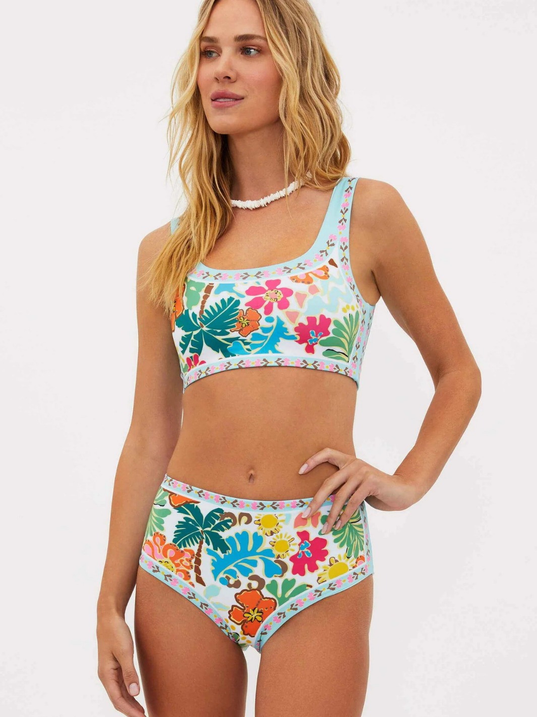 Muzhi 2024 새로운 수영복 분할 비키니 작은 꽃 코코넛 나무 유럽과 미국의 섹시 백리스 비키니 작은 신선한스토어 가기