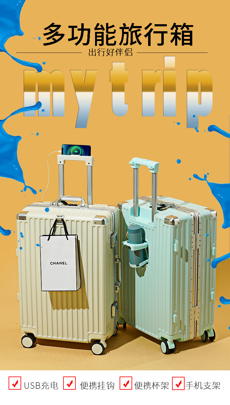 새로운 다기능 고급스러운 충전식 여행가방 남녀 학생용 대용량 트롤리 케이스 기내용 캐리어 도매스토어 가기