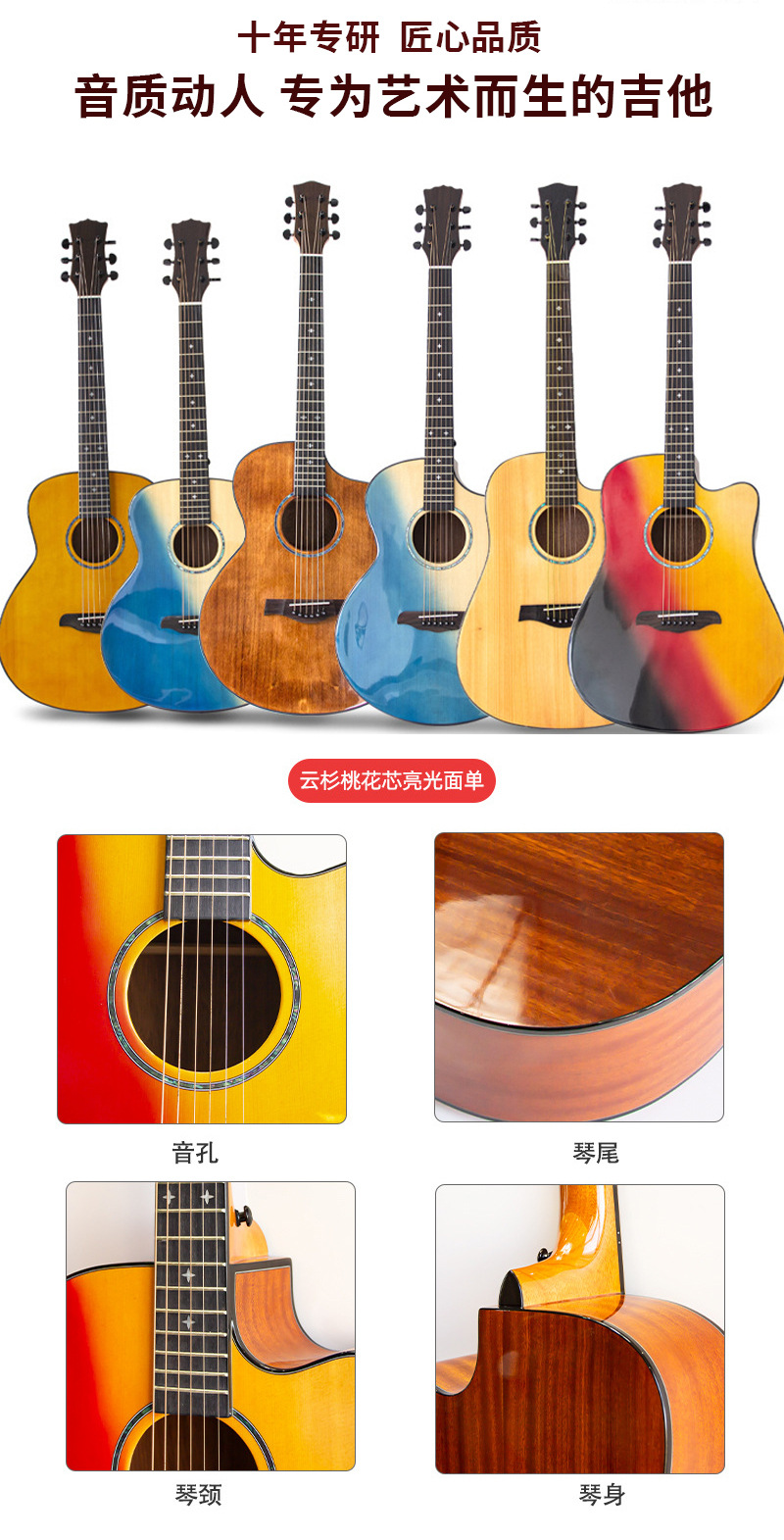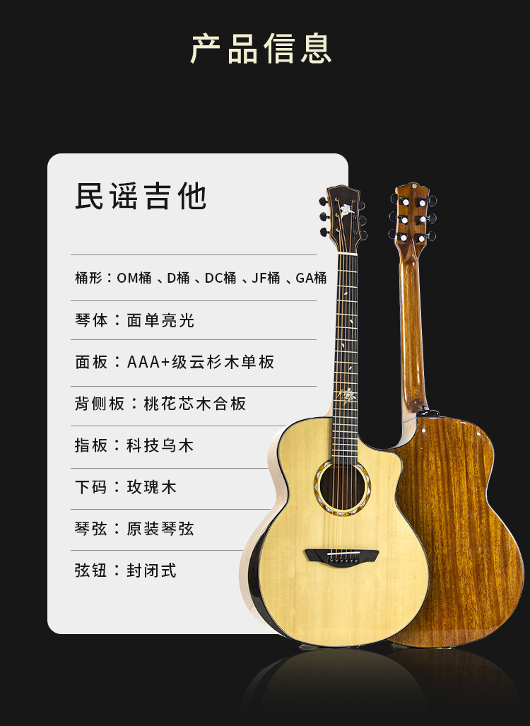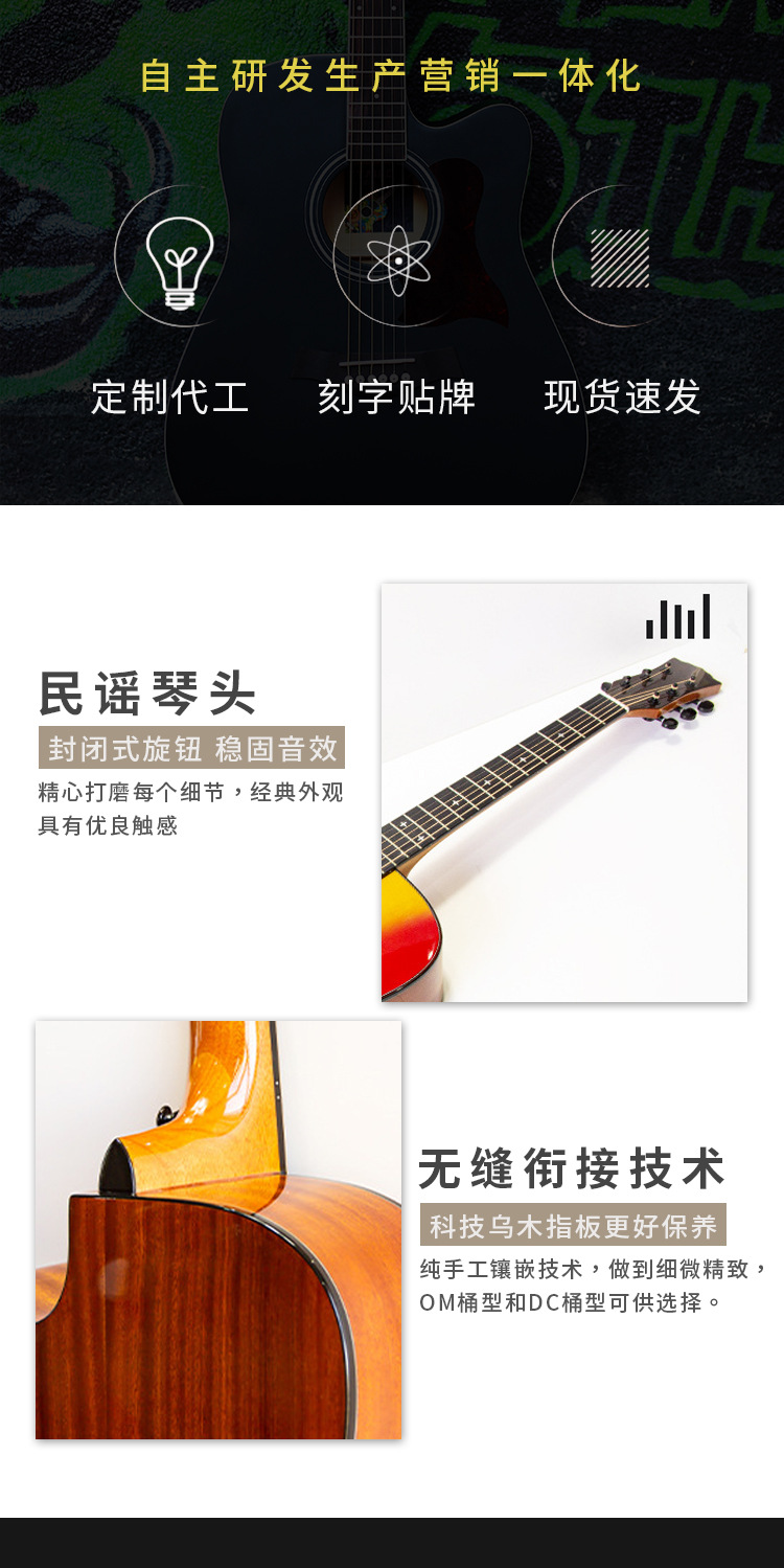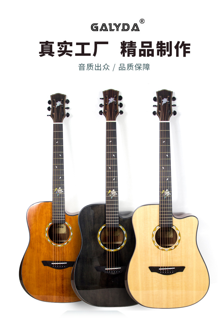 36 인치 40 인치 41 인치 가문비 나무 복숭아 꽃 코어 나무 기타 얼굴 싱글 라이트 어쿠스틱 기타 공장 아울렛