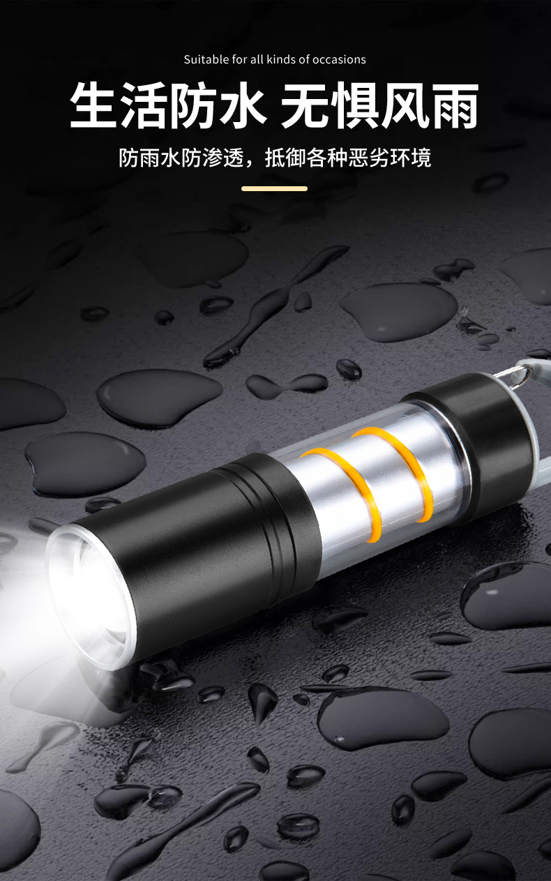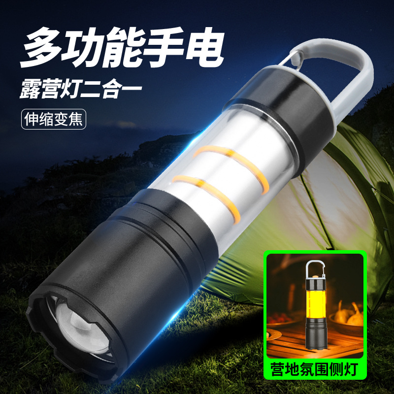 2025 국경 새로운 미니 흰색 레이저 강한 빛 손전등 충전식 휴대용 led 야외 알루미늄 캠핑 라이트