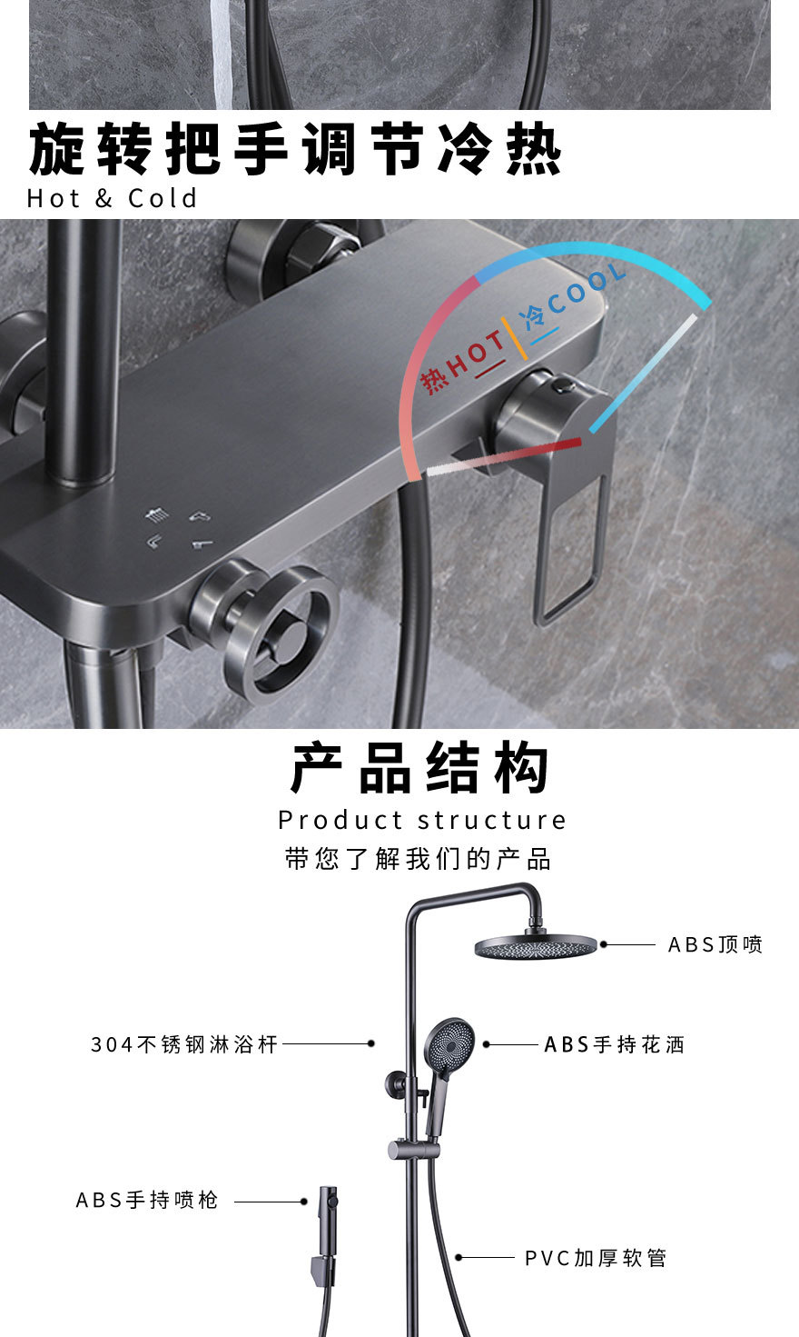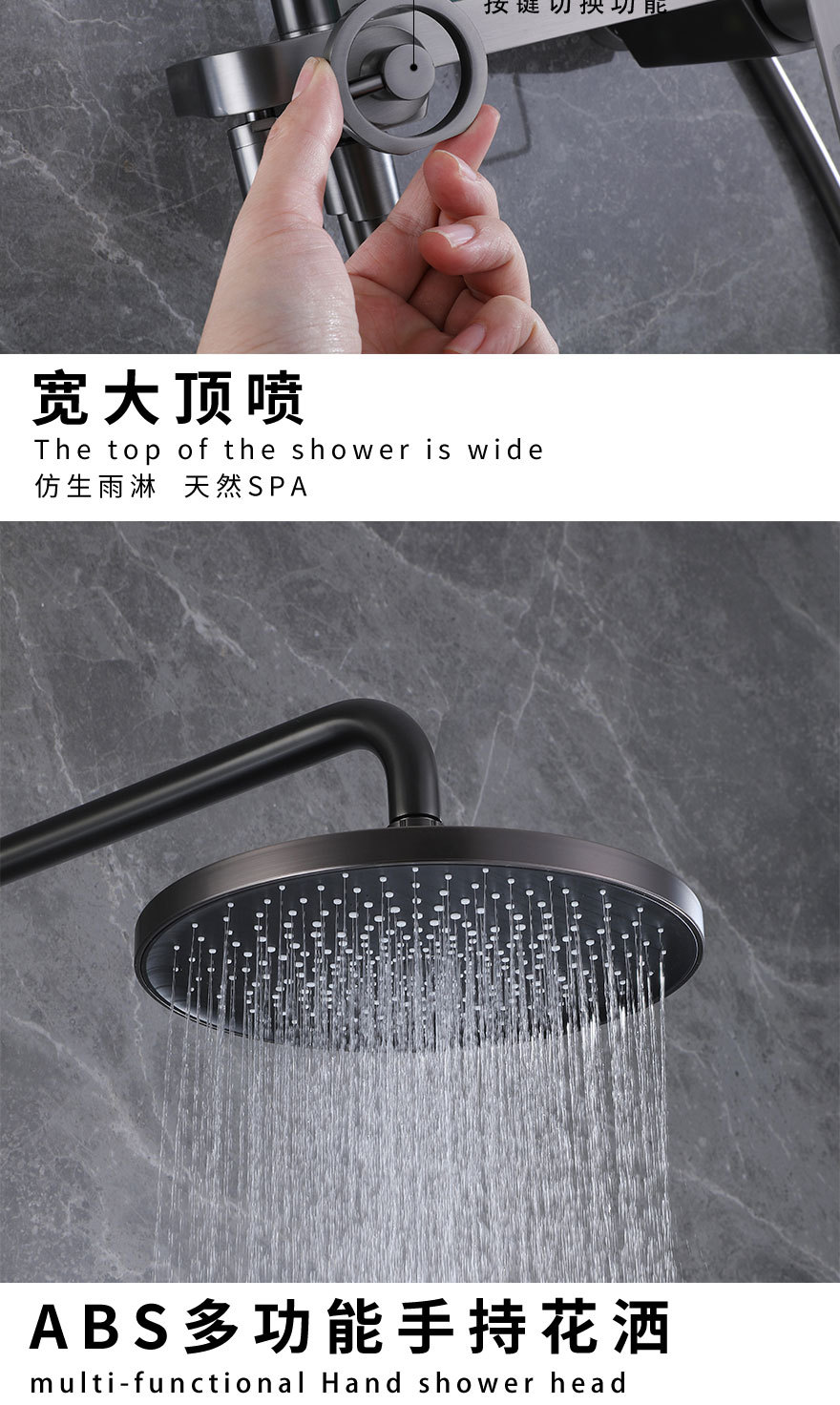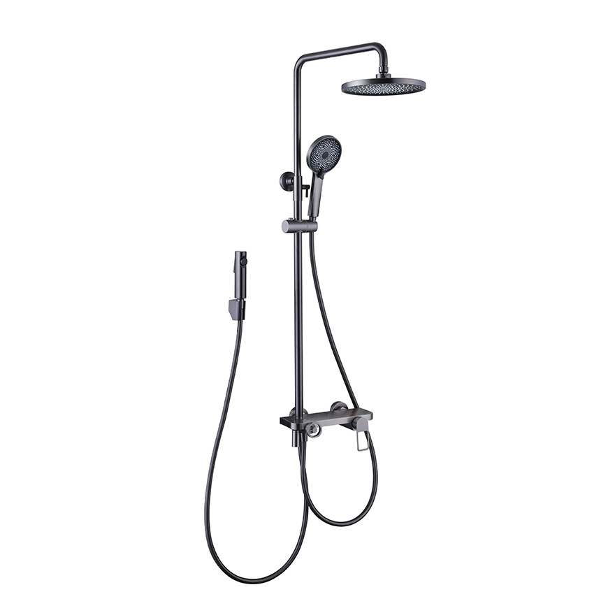 건 그레이 샤워 헤드 세트 전체 구리 욕실 레인 샤워 헤드 욕실 리프팅 혼합 밸브 수도꼭지 도매