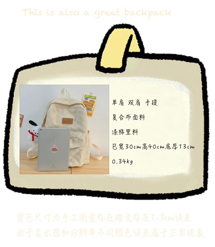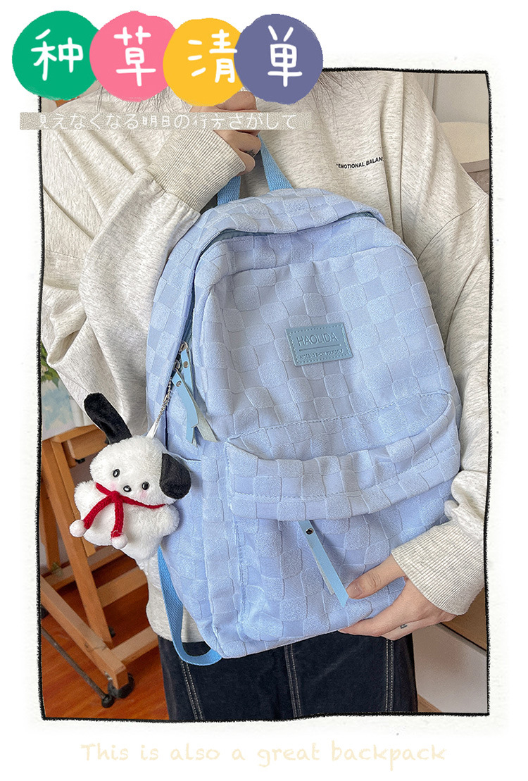 고급스러운 책가방 여고생 대학생 중학생 대용량 백팩 캐주얼 다용도 체크무늬 소녀 백팩스토어 가기