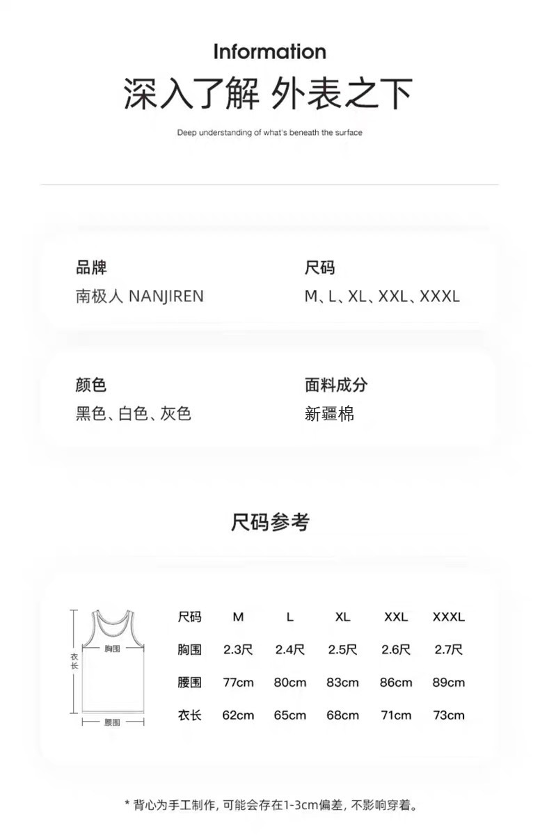 남극인 남성용 조끼 여름 순면 남성 여름용 순면 땀 흡수 남성용 순면 신축성 변형 없음 통기성 여름용