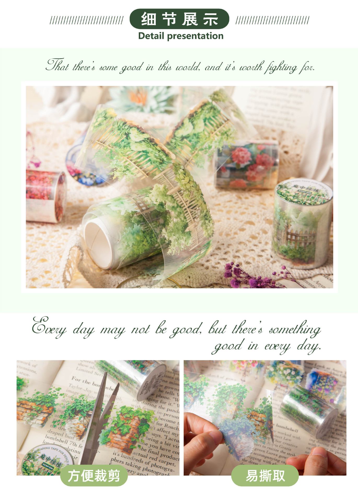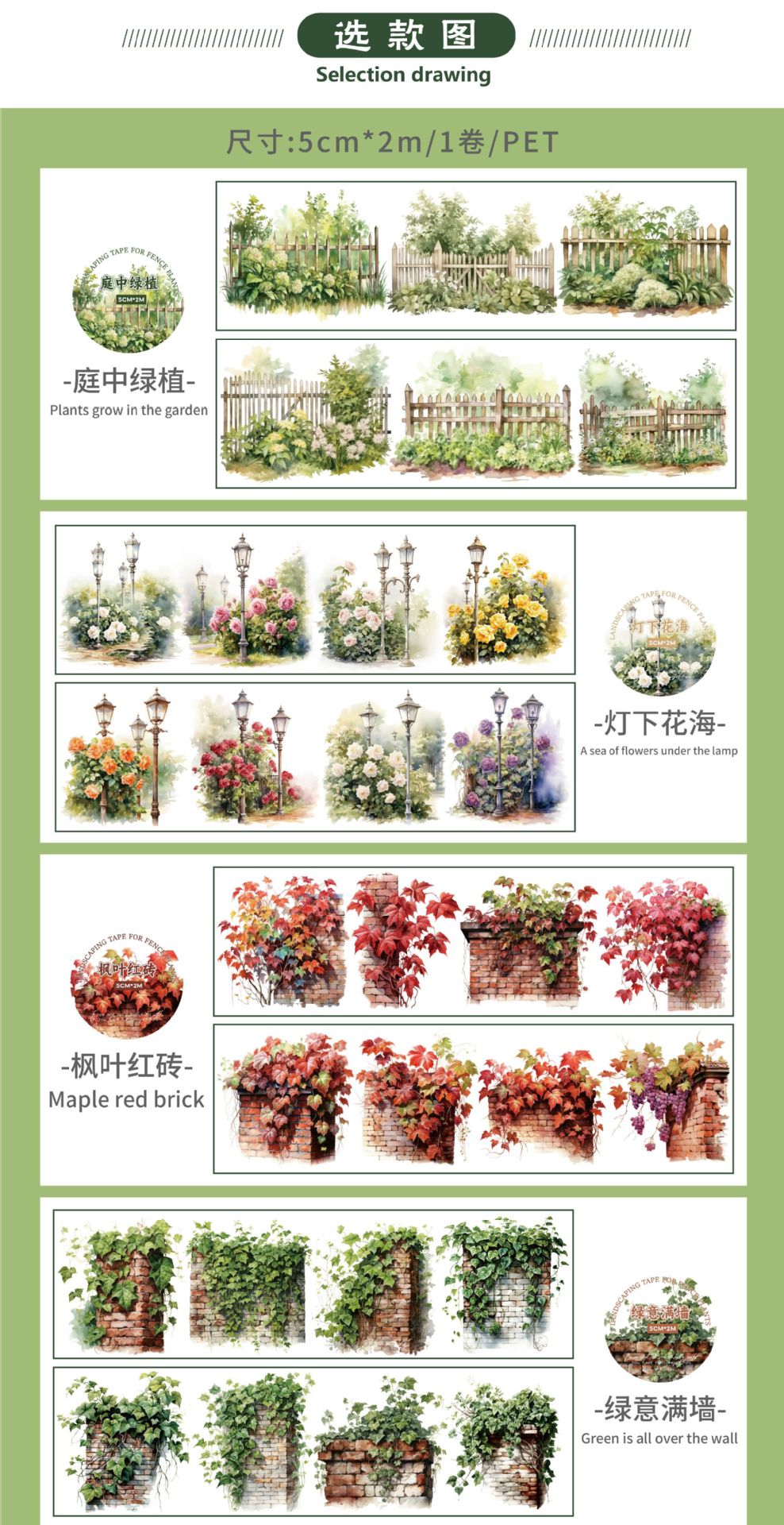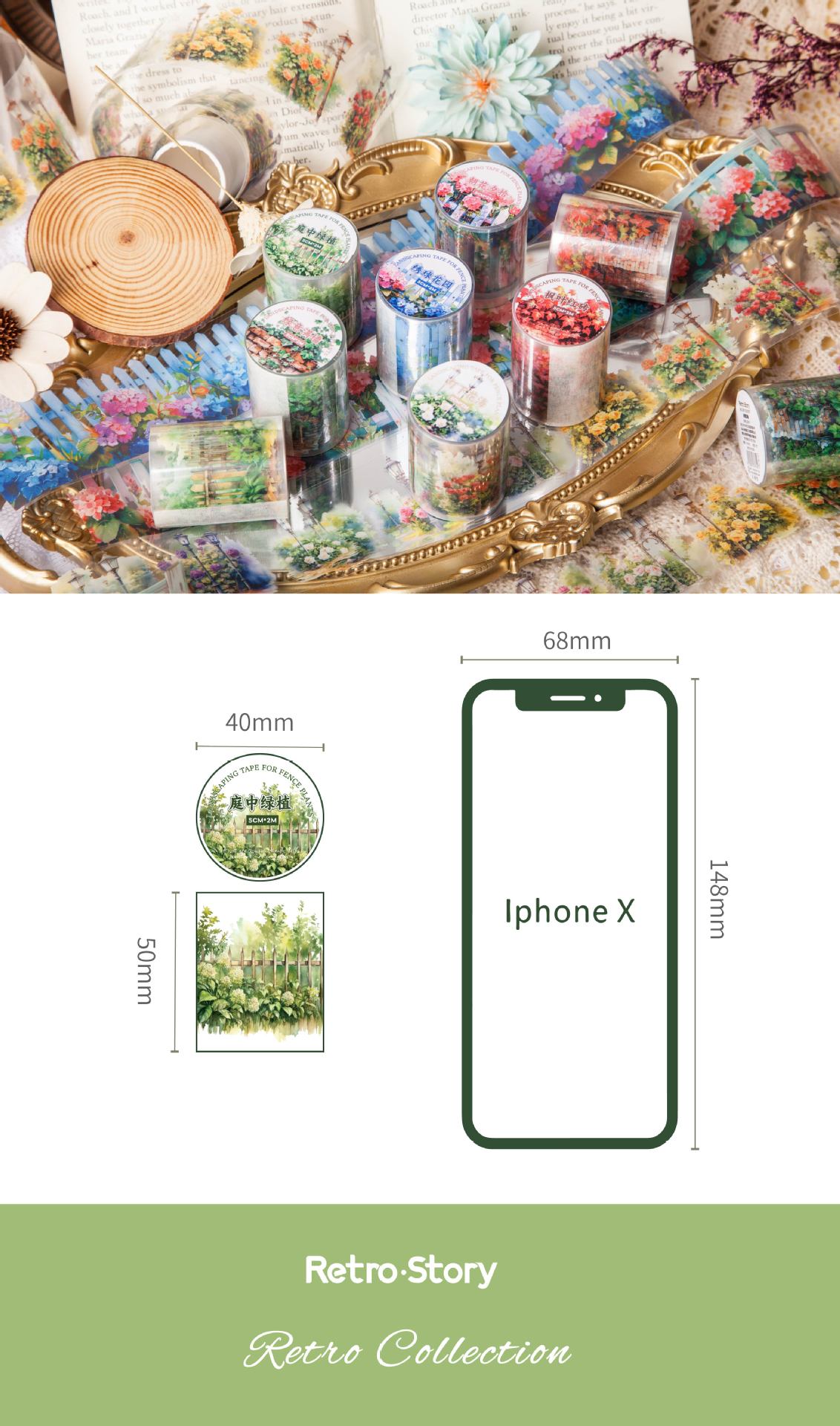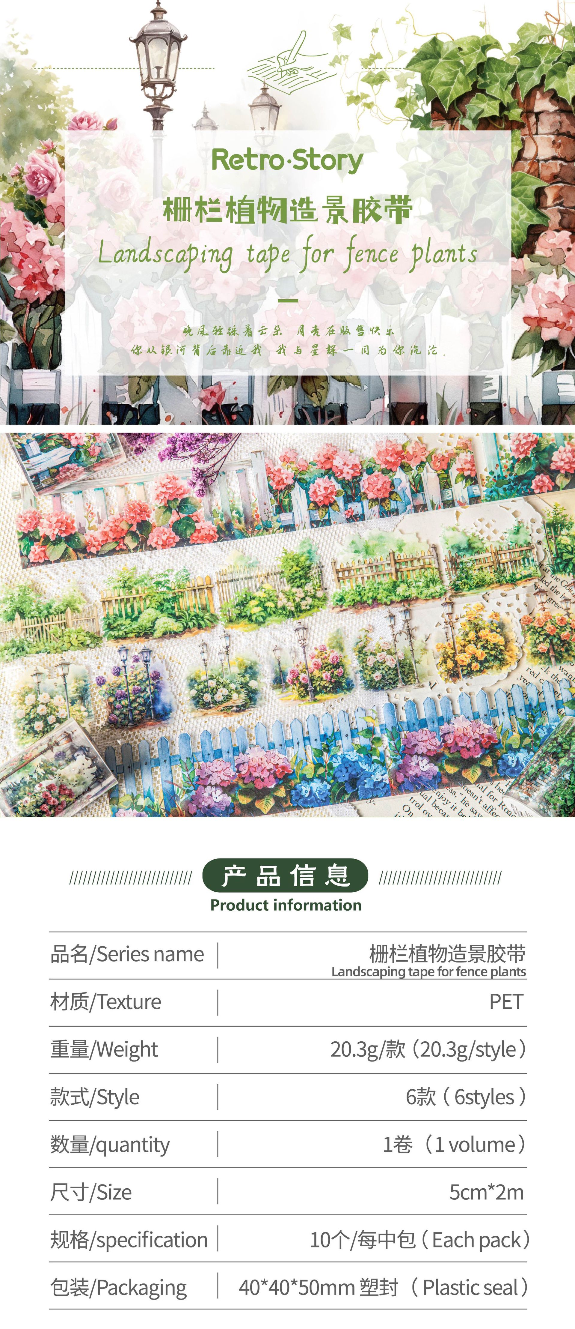 레트로 스토리 풍경 테이프 울타리 식물 시리즈 손 계정 재료 장식 콜라주 베이스 스티커 6