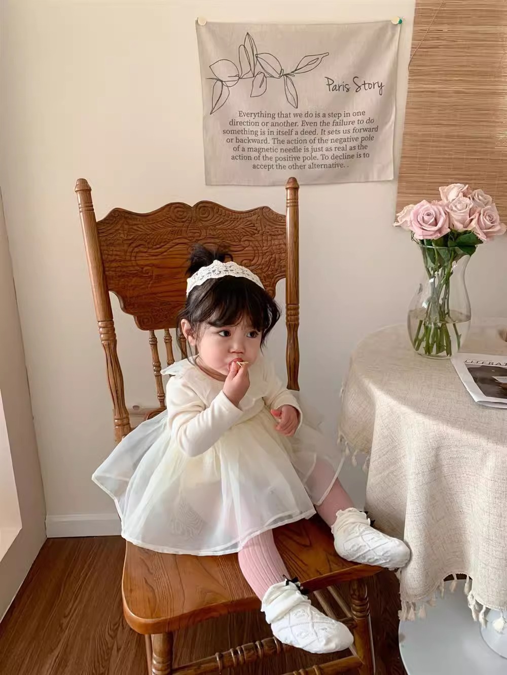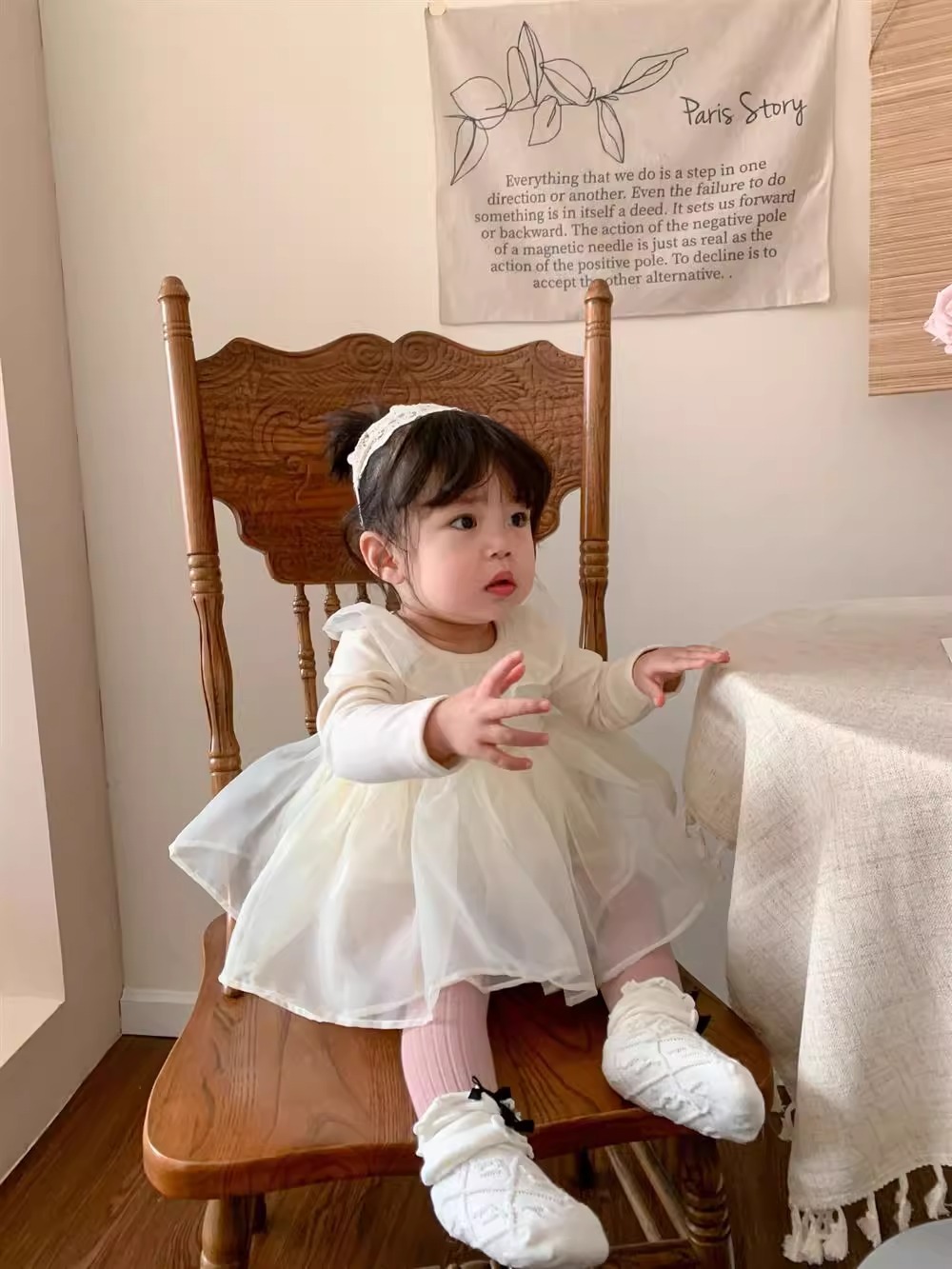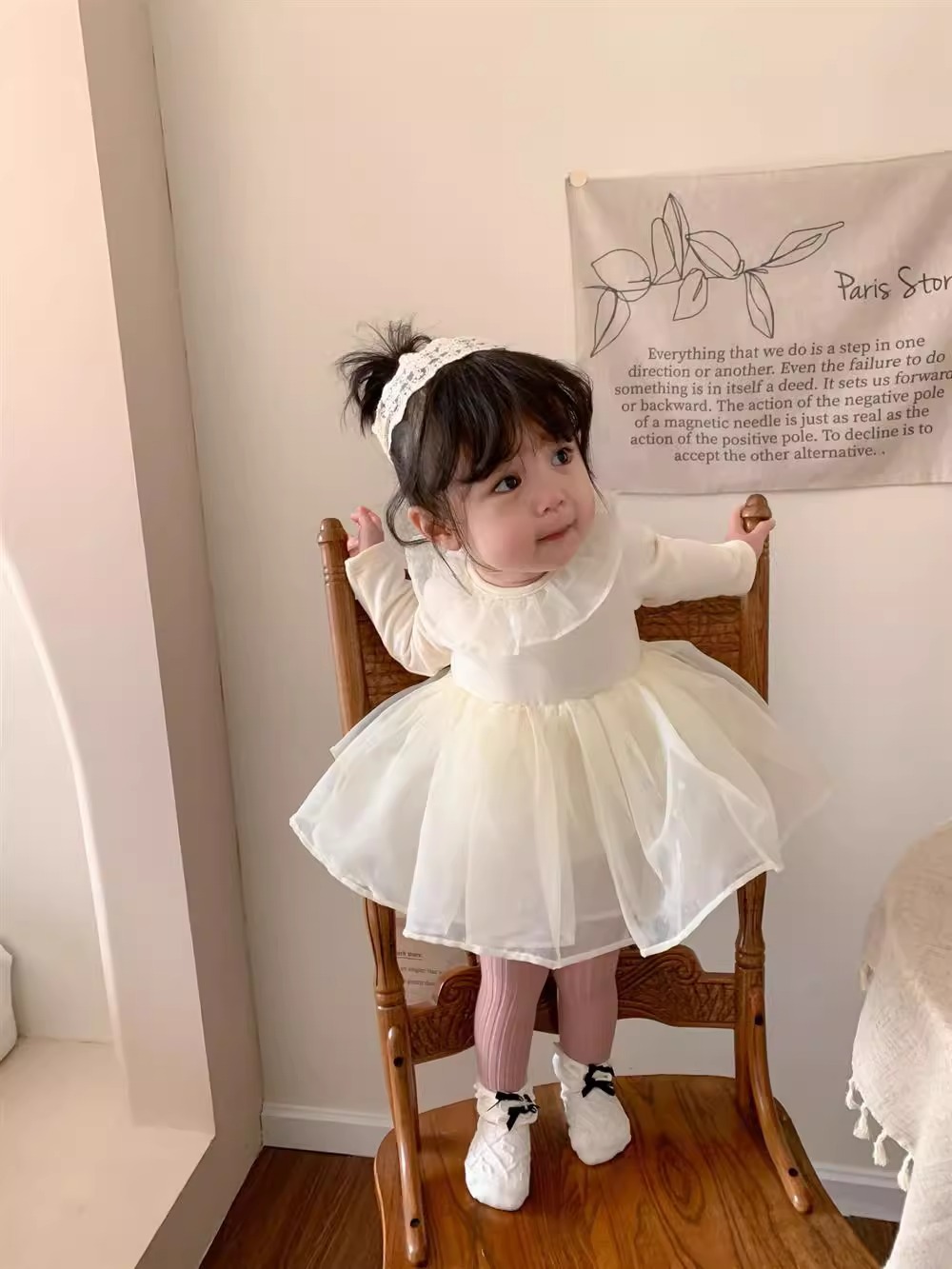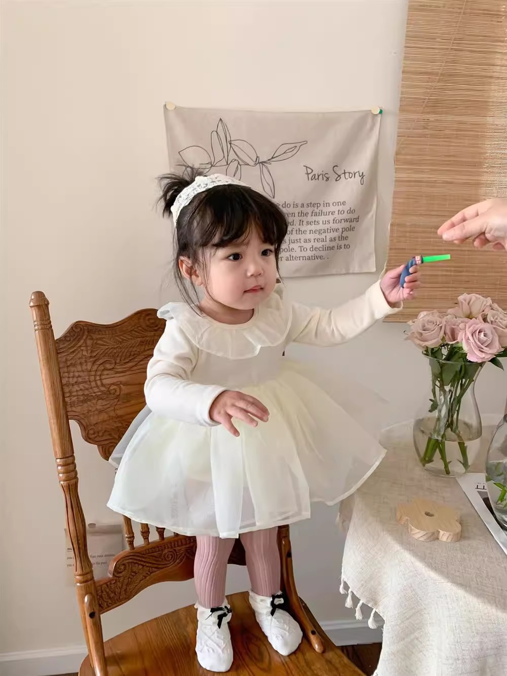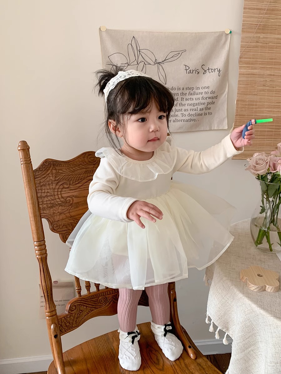 소녀의 원피스 봄 새로운 한국 스타일 아기 가방 방귀 공주 원피스 봄과 가을 세련된 아기 소녀의 원피스스토어 가기
